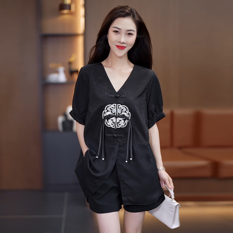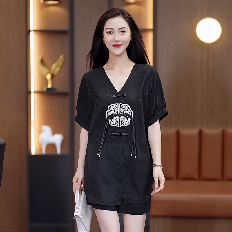 BY15332# 夏季新款女装时尚胖MM宽松显瘦大码复古衬衫新国风女装短袖上衣女服裝批發女裝批發服飾貨源