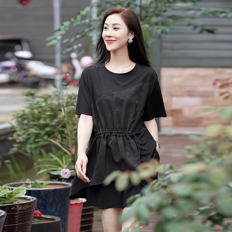 BY15333# 夏季新款大码女装短袖T恤时尚胖MM宽松显瘦洋气减龄遮肚子上衣女服裝批發女裝批發服飾貨源