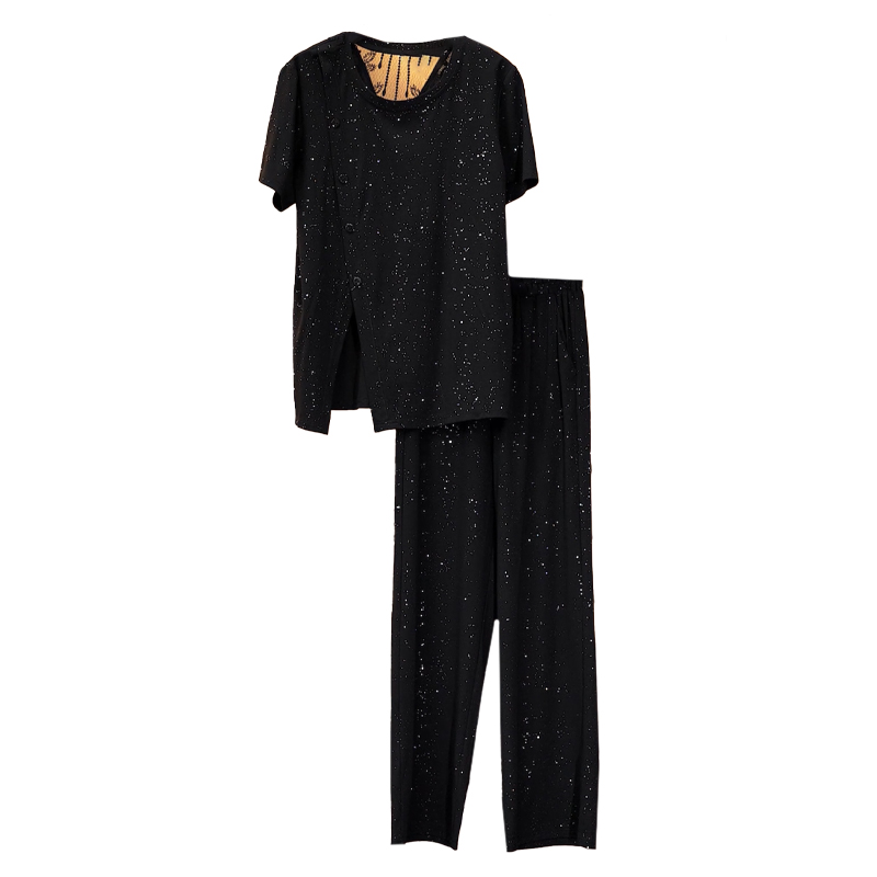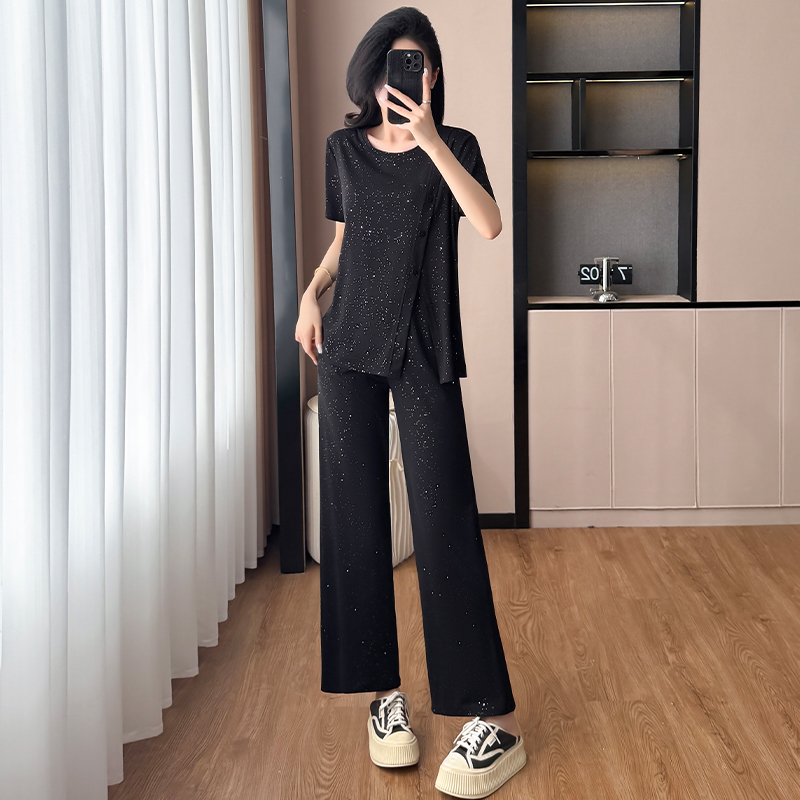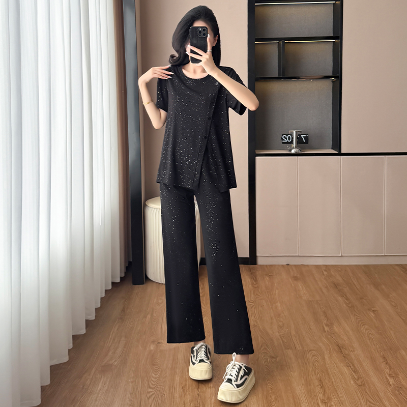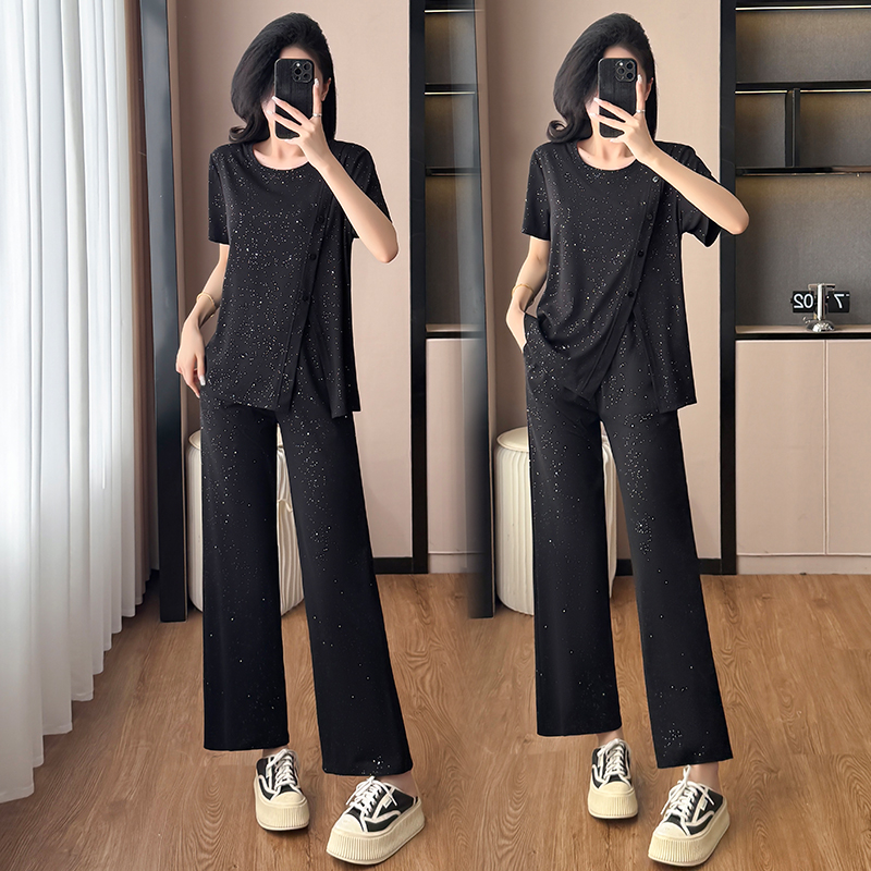 BY15337# 夏装新款女装套装气质胖妹妹大码宽松显瘦减龄短袖阔腿裤两件套女服裝批發女裝批發服飾貨源