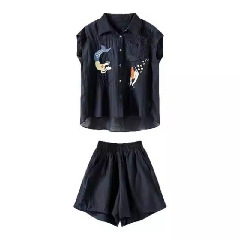 BY15340# 时尚气质刺绣套装女夏季新款欧洲站大码女装上衣短裤两件套服裝批發女裝批發服飾貨源