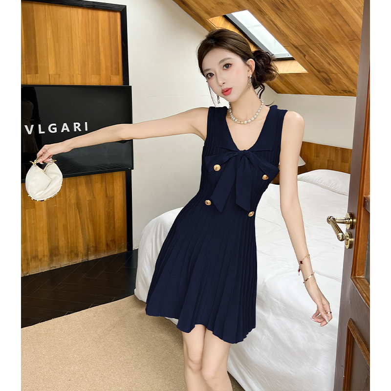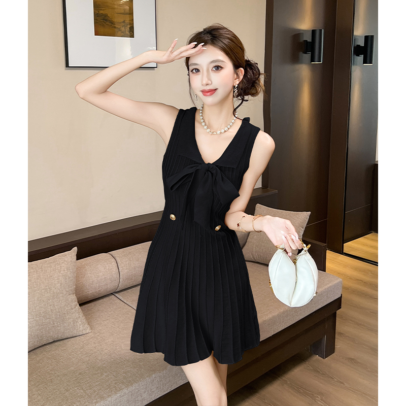 BY15443# 沪上千金名媛气质感无袖针织显瘦修身小香风连衣裙蝴蝶结 服裝批發女裝批發服飾貨源