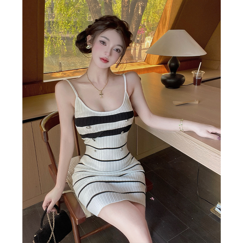 BY15452# 小香风性感紧身内搭针织包臀裙夏季条纹吊带连衣裙短裙女 服裝批發女裝批發服飾貨源