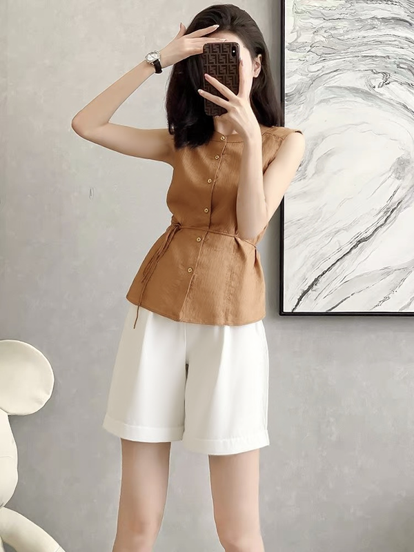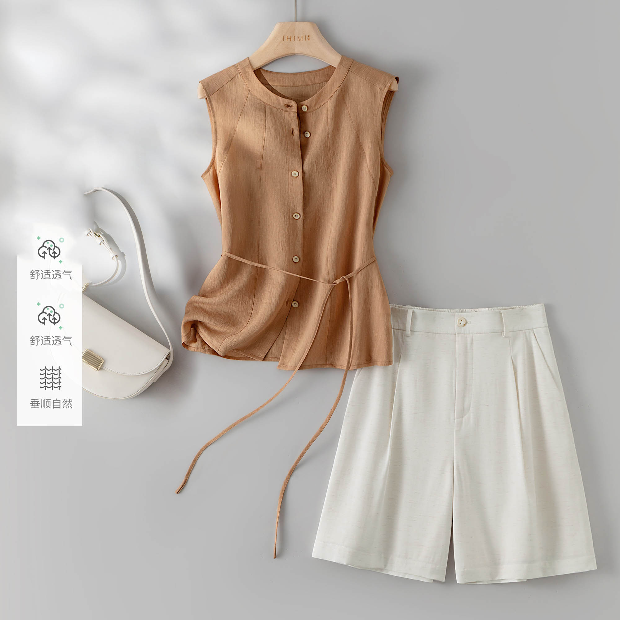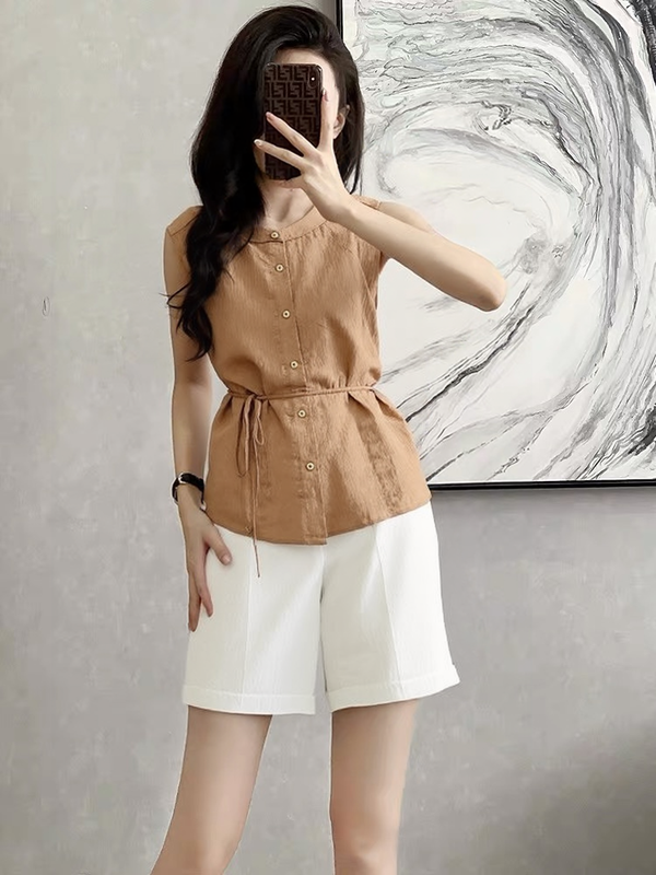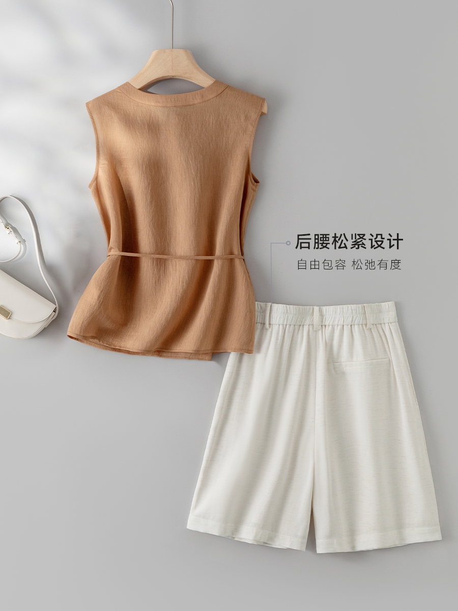 BY15464# 高端轻奢时尚气质轻薄短裤套装女夏季时髦无袖衬衫两件套 服裝批發女裝批發服飾貨源