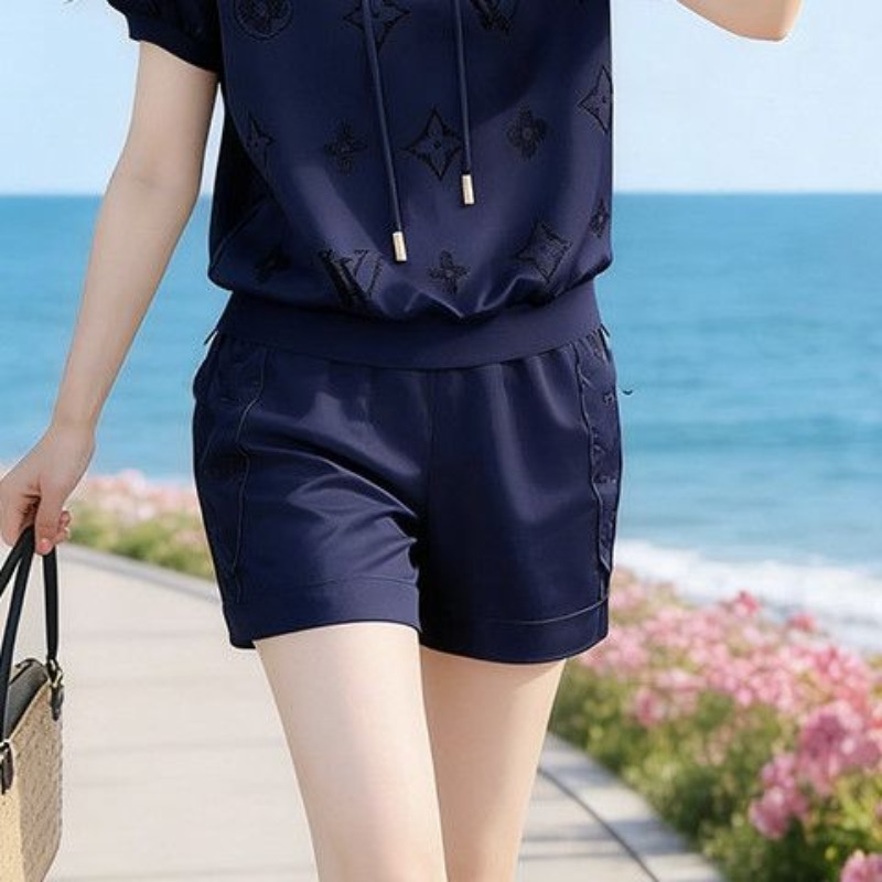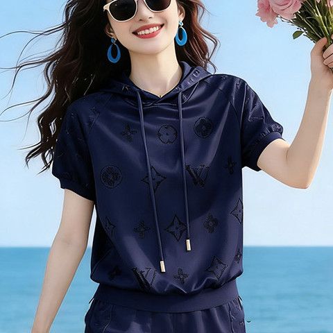 BY15468# 夏季女装新款小清新运动休闲时尚连帽卫衣短袖短裤两件套装 服裝批發女裝批發服飾貨源