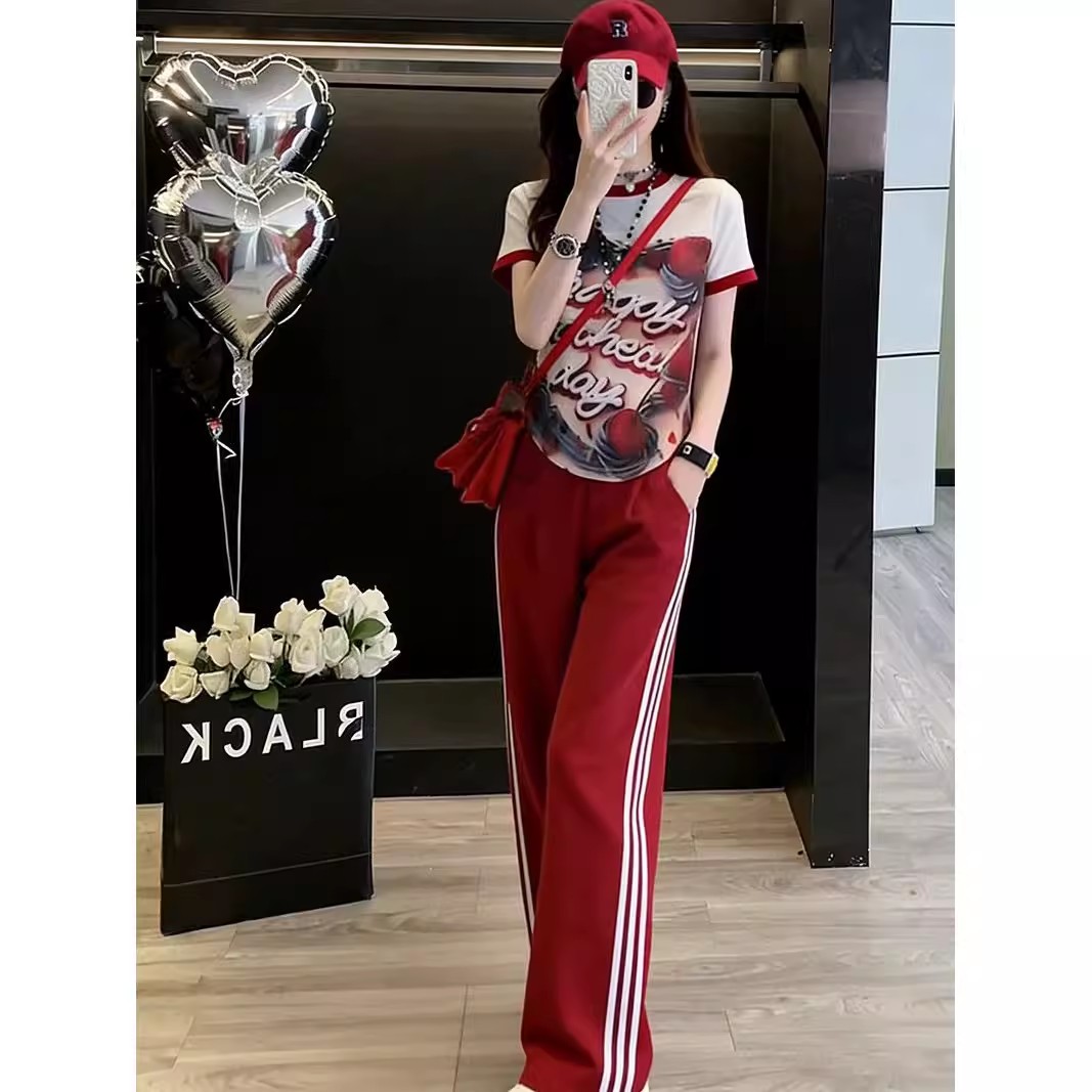 BY15476# 欧货休闲运动套装女夏装新款时尚洋气修身圆领印花短袖两件套 服裝批發女裝批發服飾貨源