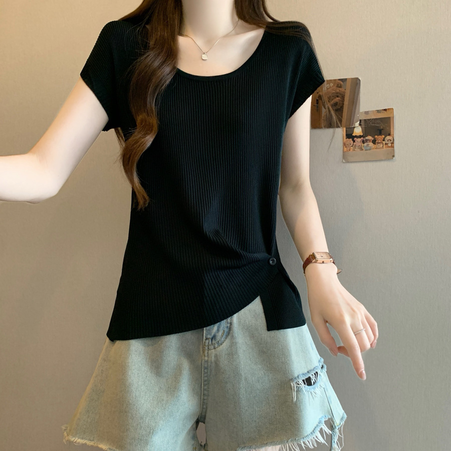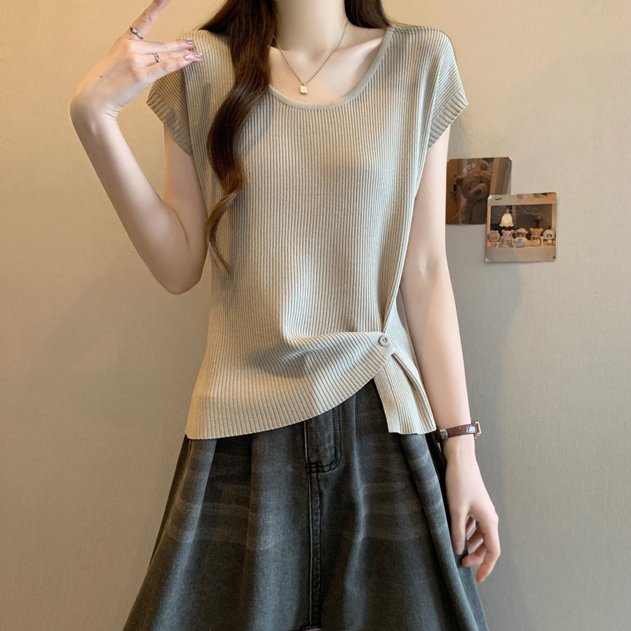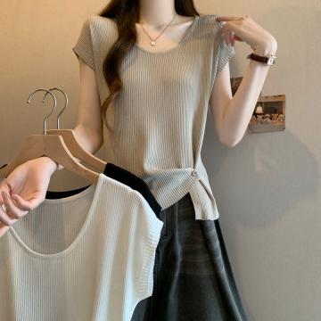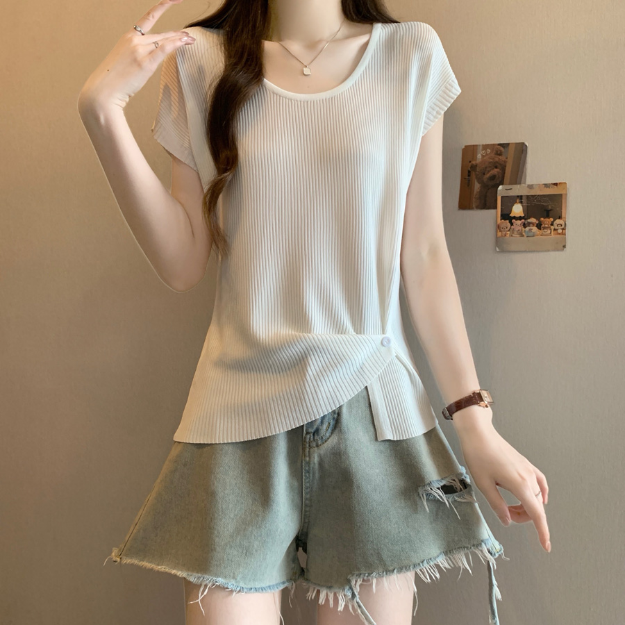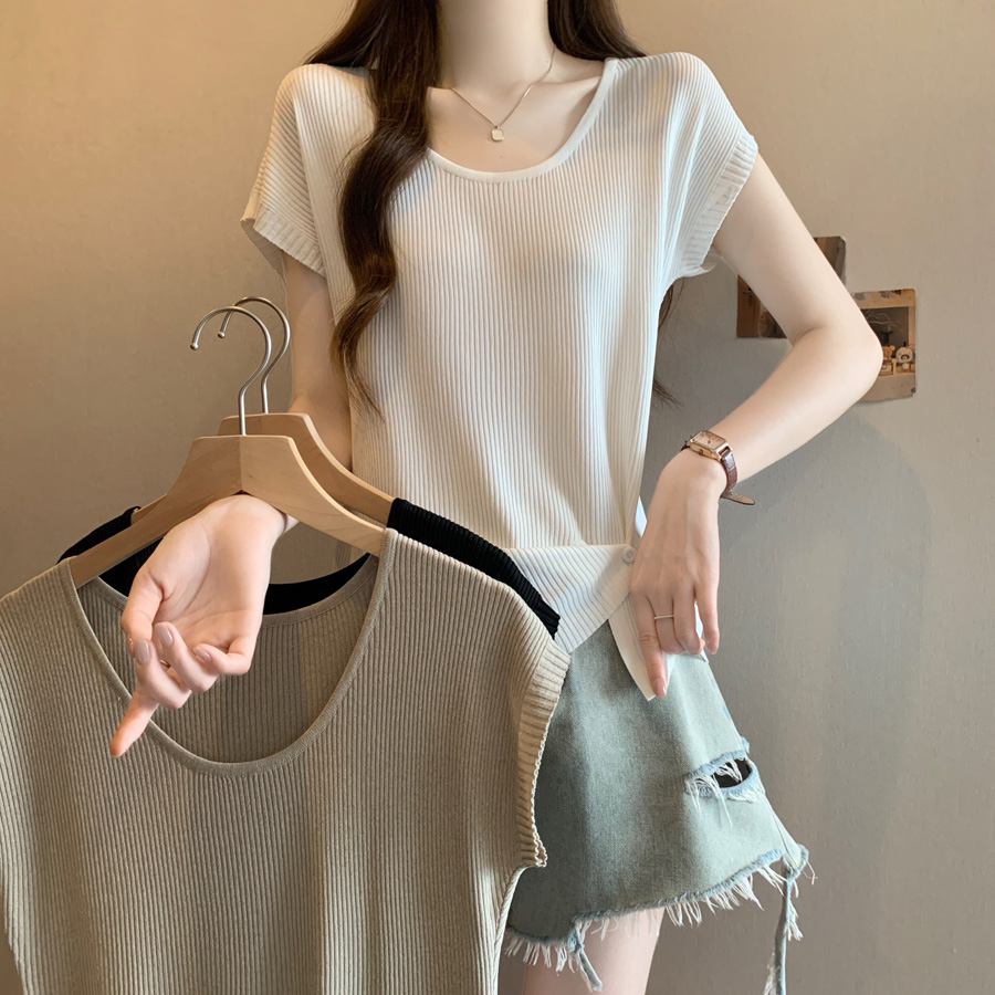BY15490# 夏季新款个性设计百搭冰丝针织衫女大码显瘦透气单上衣 服裝批發女裝批發服飾貨源
