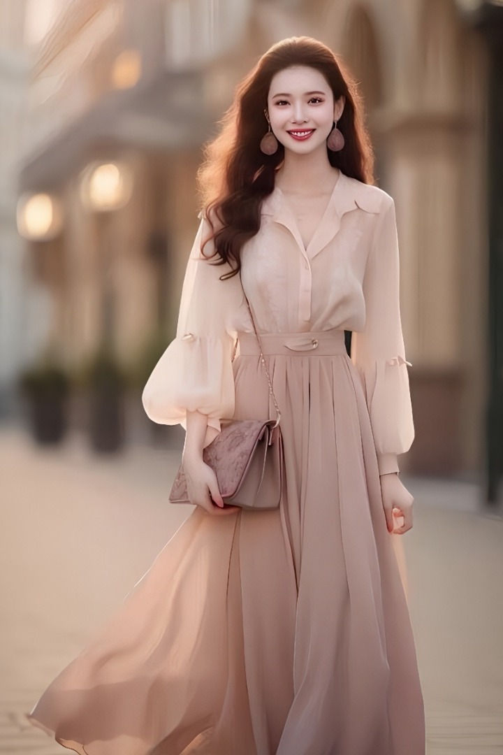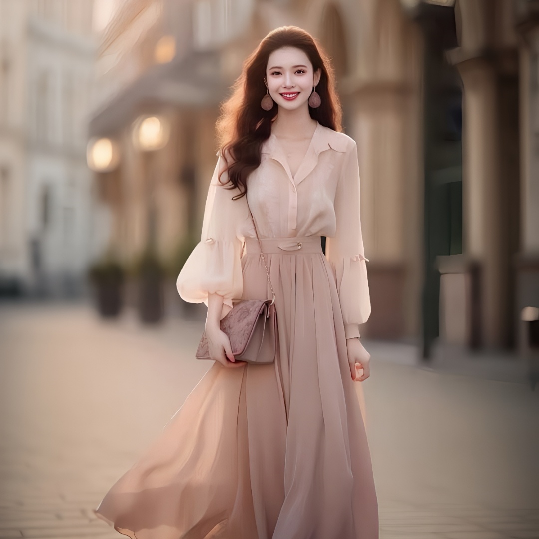 BY15501# 春夏穿搭新款小香风衬衫套装洋气时尚时髦气质粉色长裙两件套 服裝批發女裝批發服飾貨源