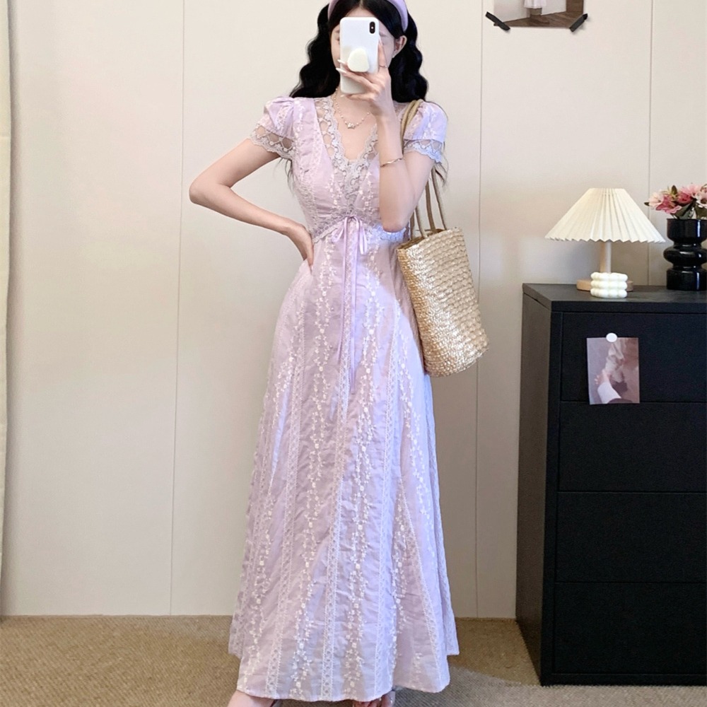 BY15521# 大码夏季新款时尚百搭气质温柔风绣花短袖连衣裙收腰显瘦中长裙子 服裝批發女裝批發服飾貨源