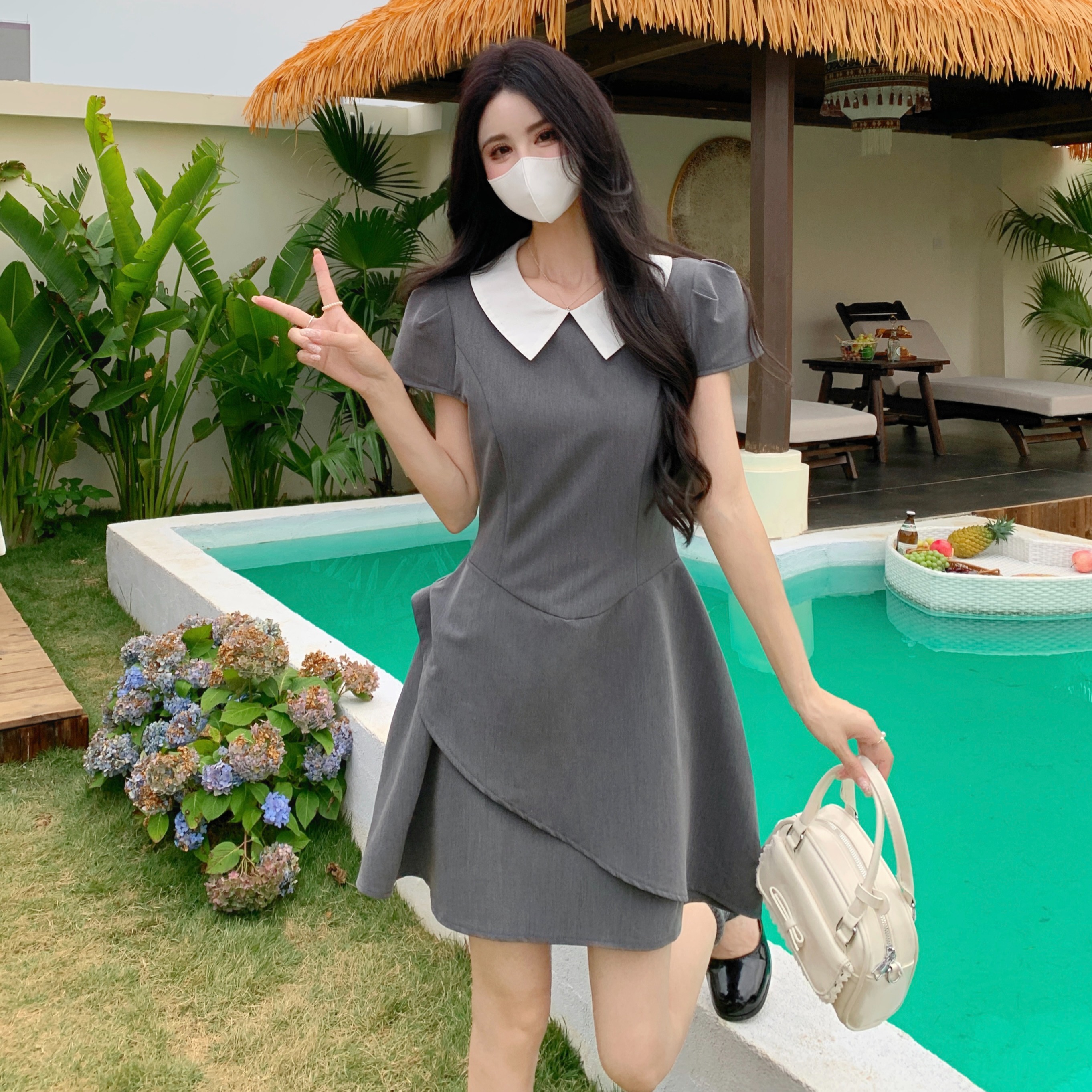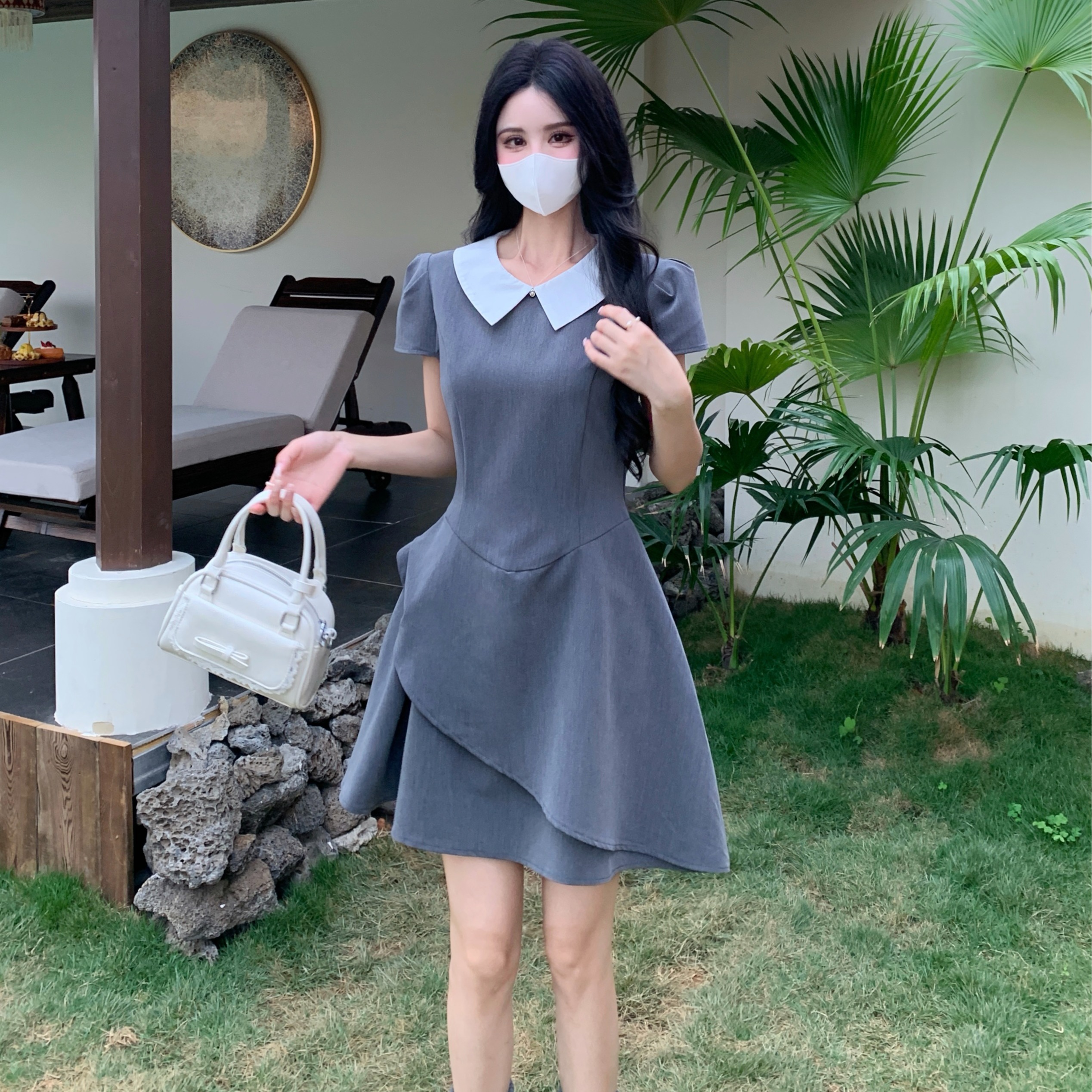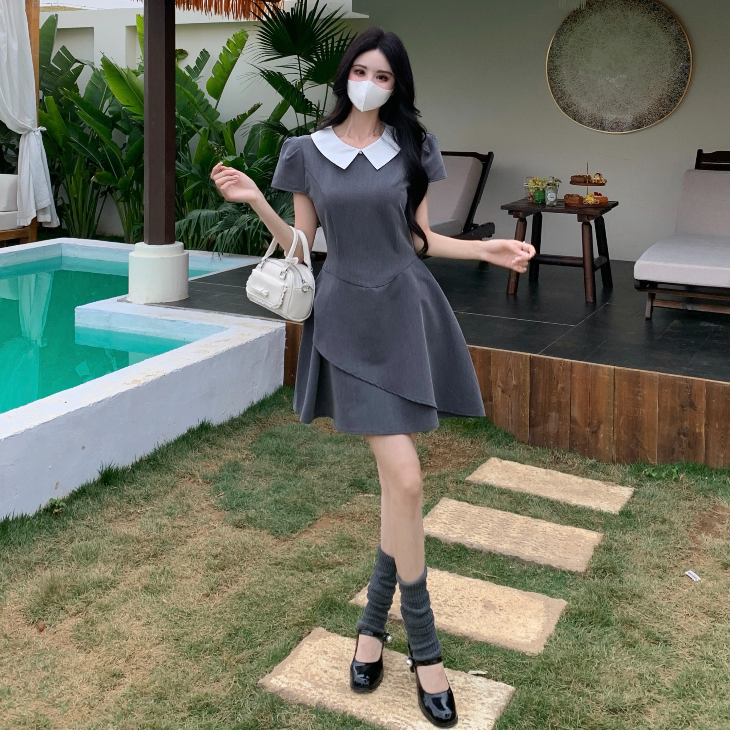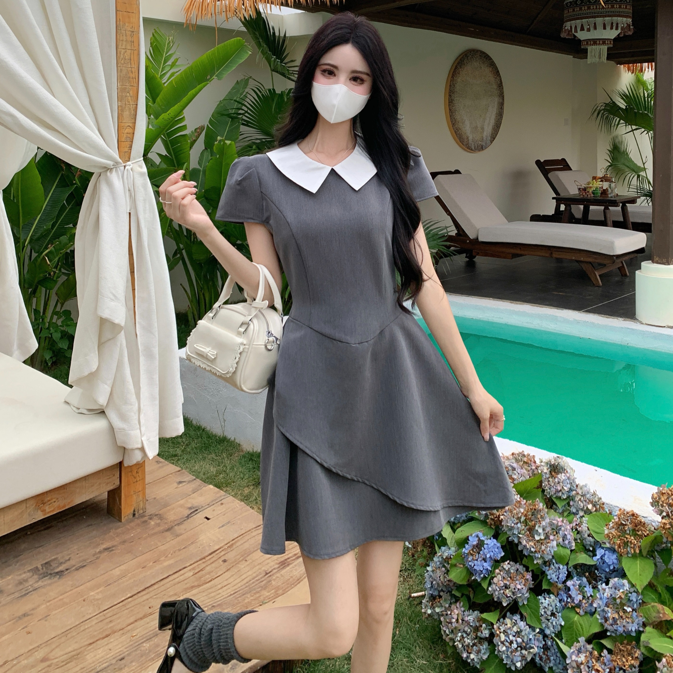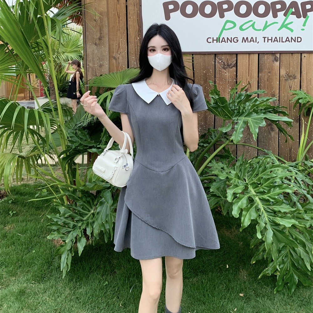 BY15533# 夏季新款学院风法式气质娃娃领短袖大码高腰显瘦连衣裙女 服裝批發女裝批發服飾貨源