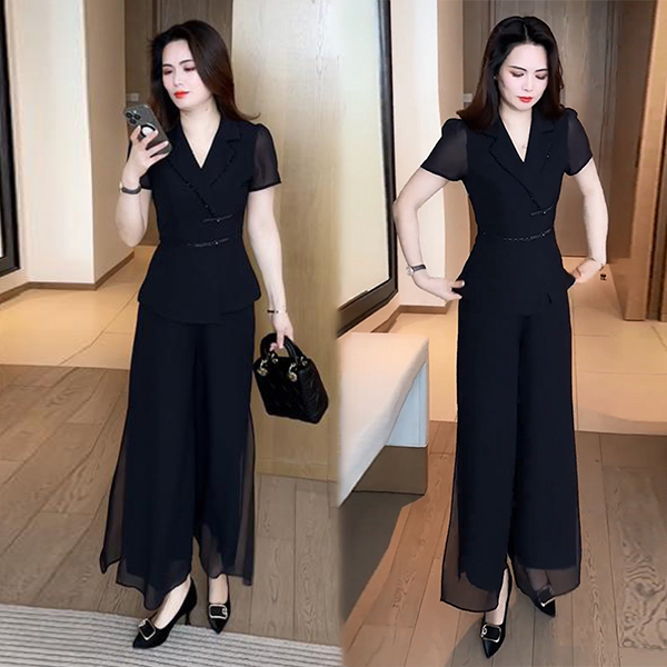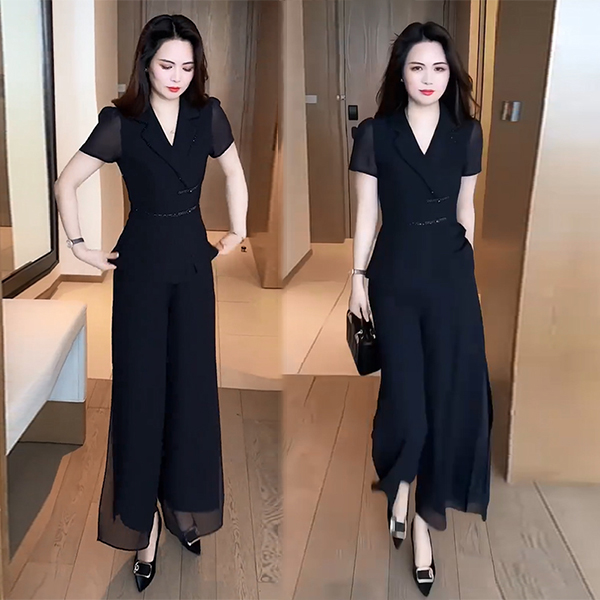 BY15547# 夏季新款新中式盘扣穿搭洋气时尚气质西装领减龄套装 服裝批發女裝批發服飾貨源