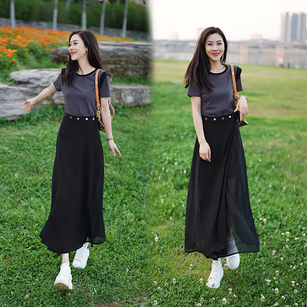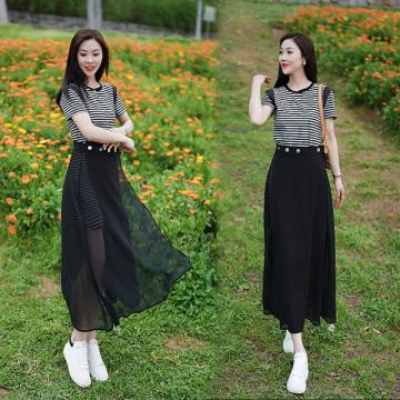 BY15556# 女士新款连衣裙时尚套装夏季高级短裙+网纱半身裙两件套 服裝批發女裝批發服飾貨源