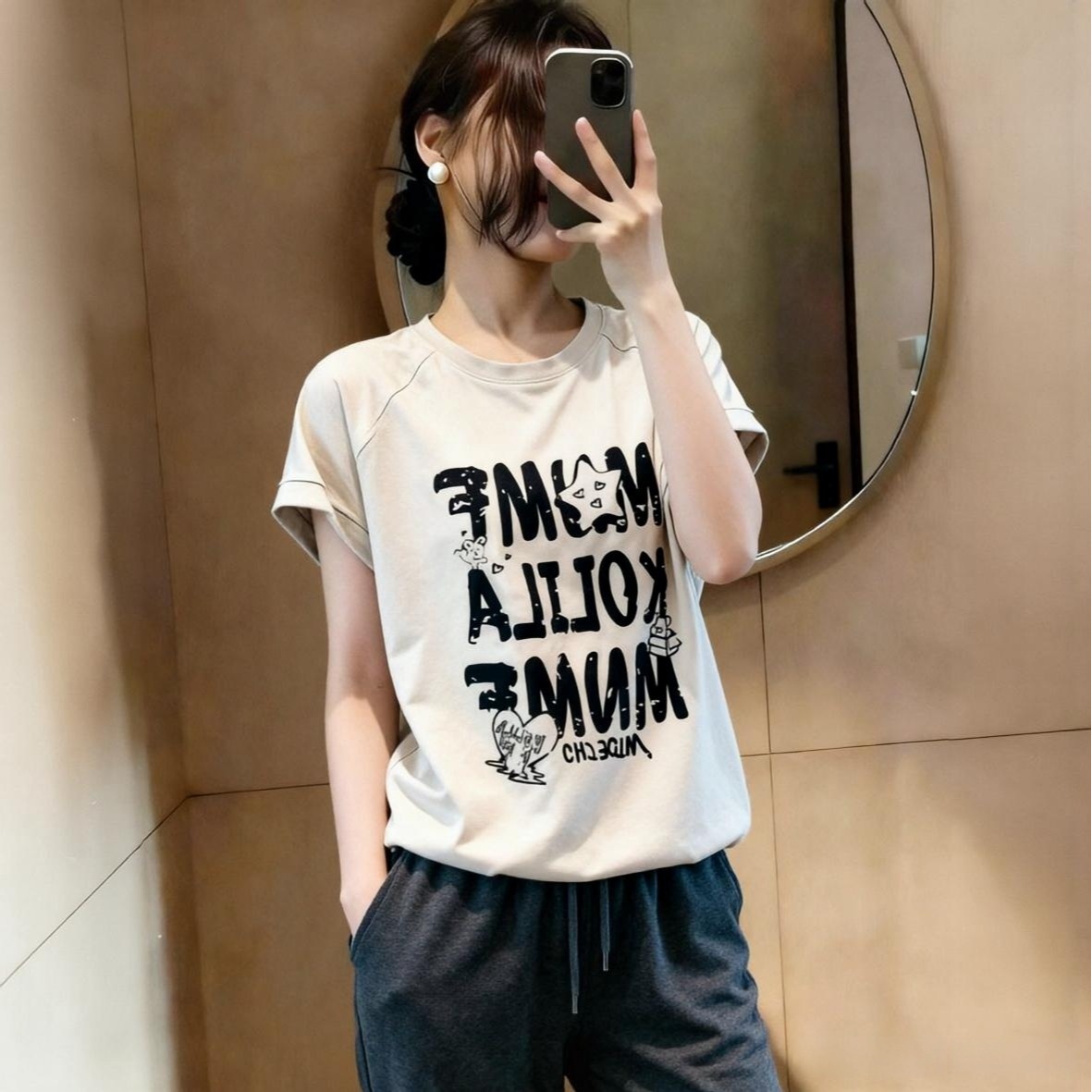 BY15640# 夏季新款韩版时尚通勤风印花字母圆领宽松短袖T恤上衣 服裝批發女裝批發服飾貨源