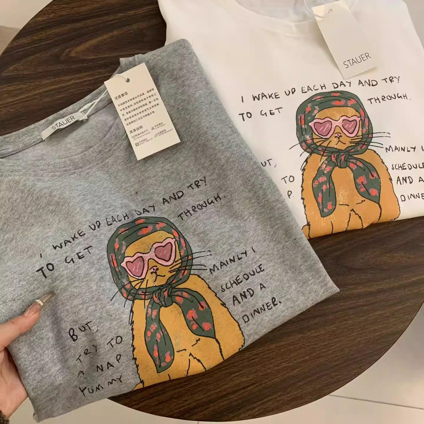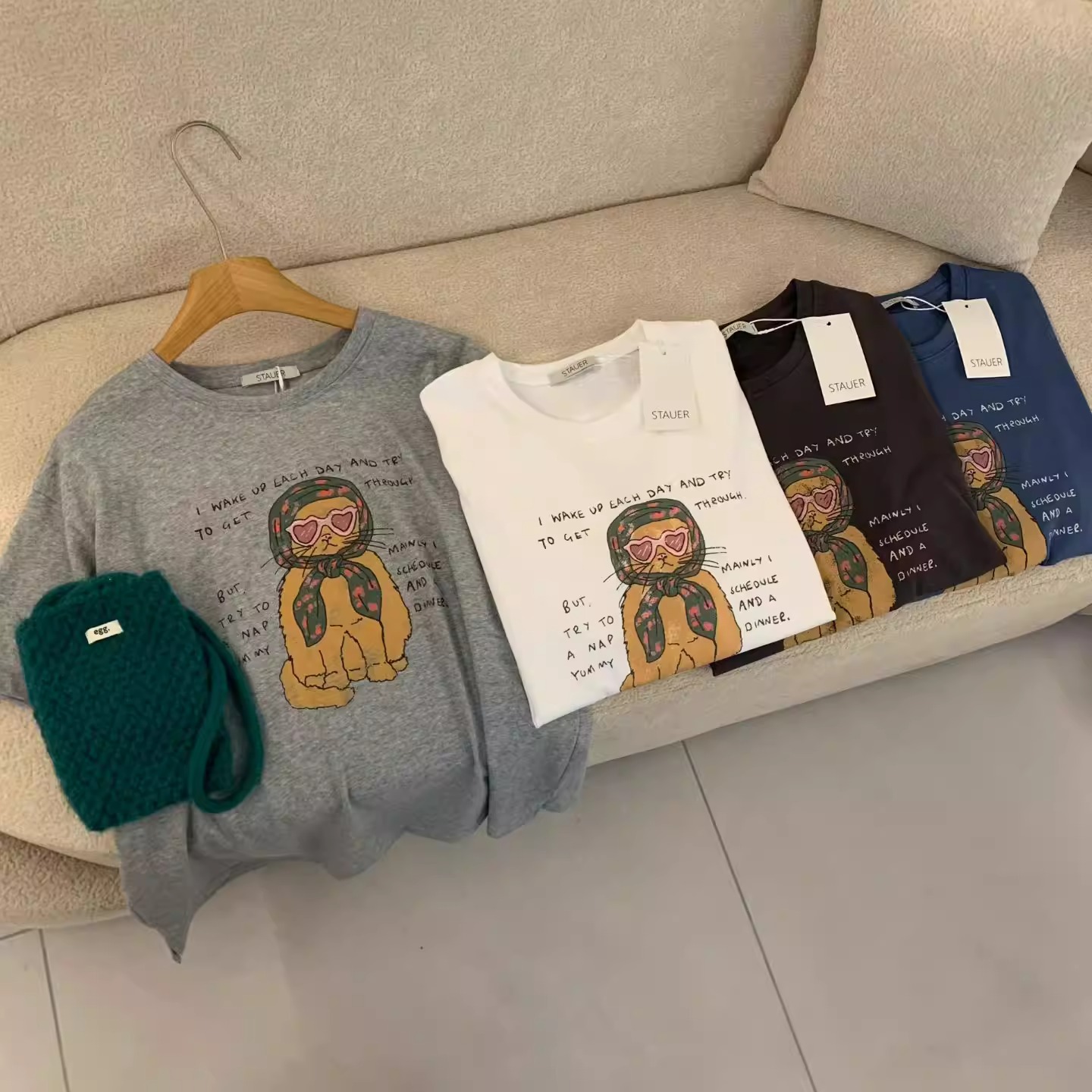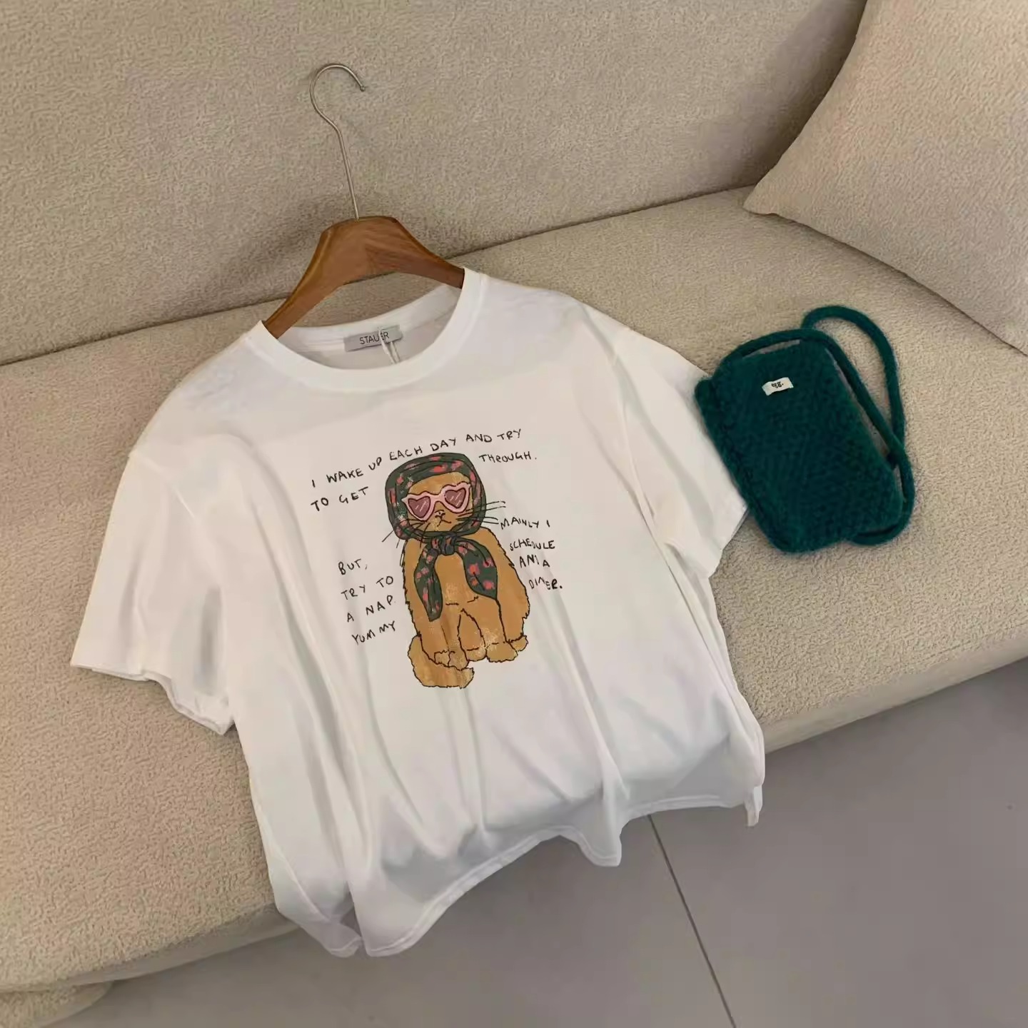 BY15677# 纯棉短袖T恤女夏韩版新款设计感卡通宽松大码oversize上衣 服裝批發女裝批發服飾貨源