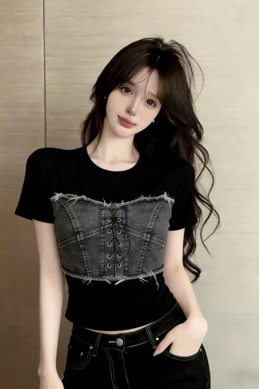 Hot : 大码 韩版 连衣裙 雪纺 衬衫 胖MM 牛仔 背带裤 假两件