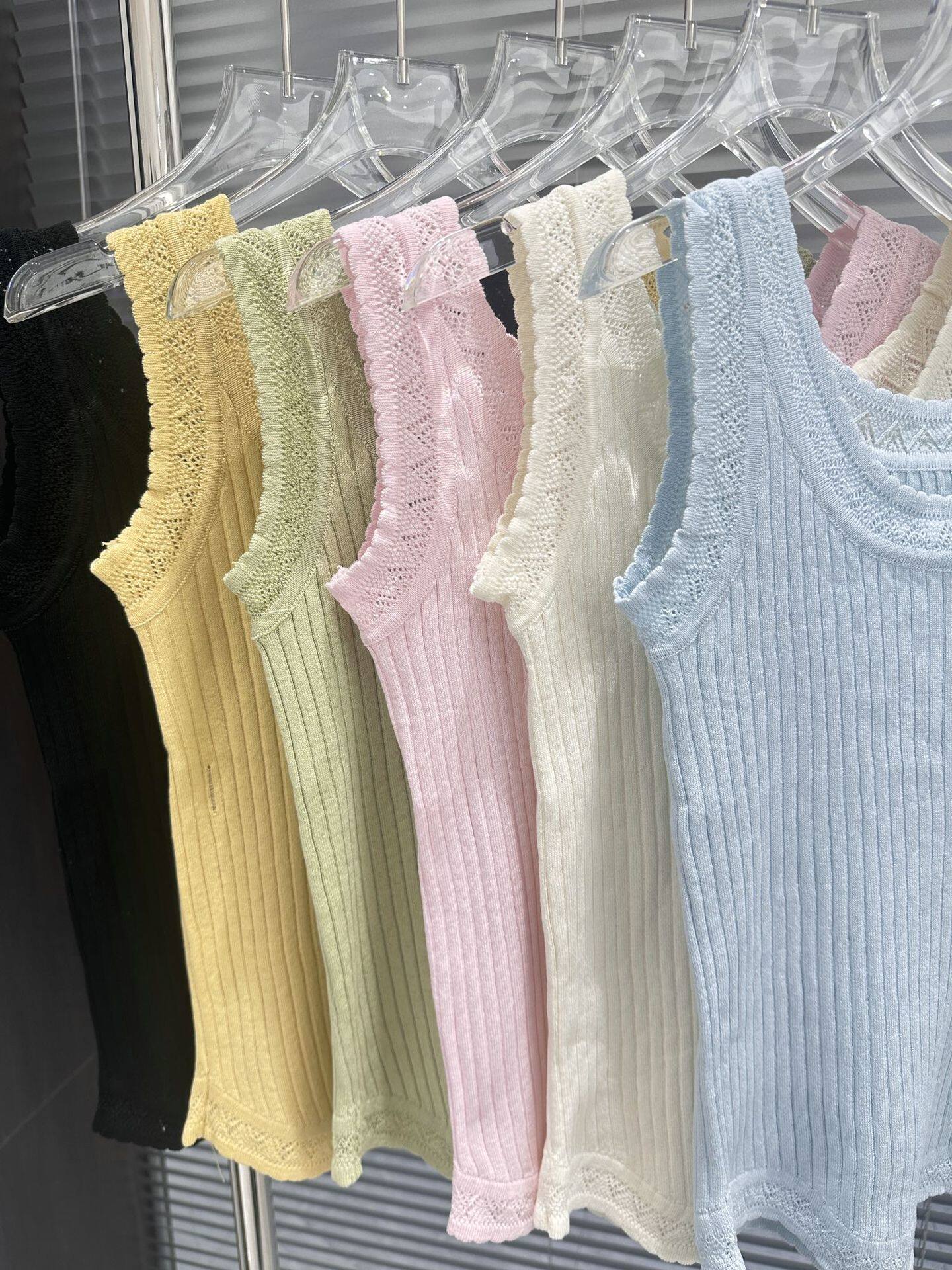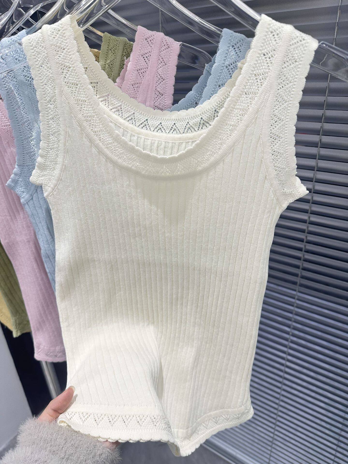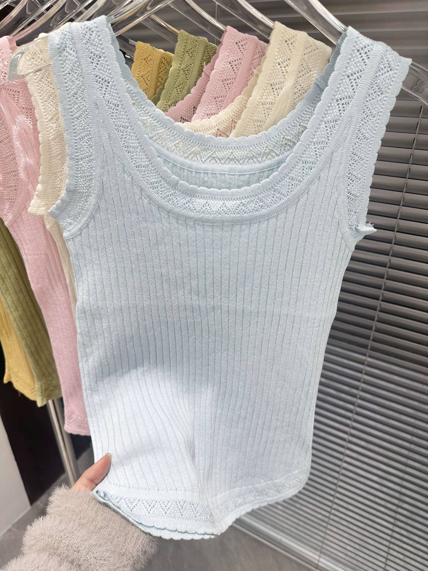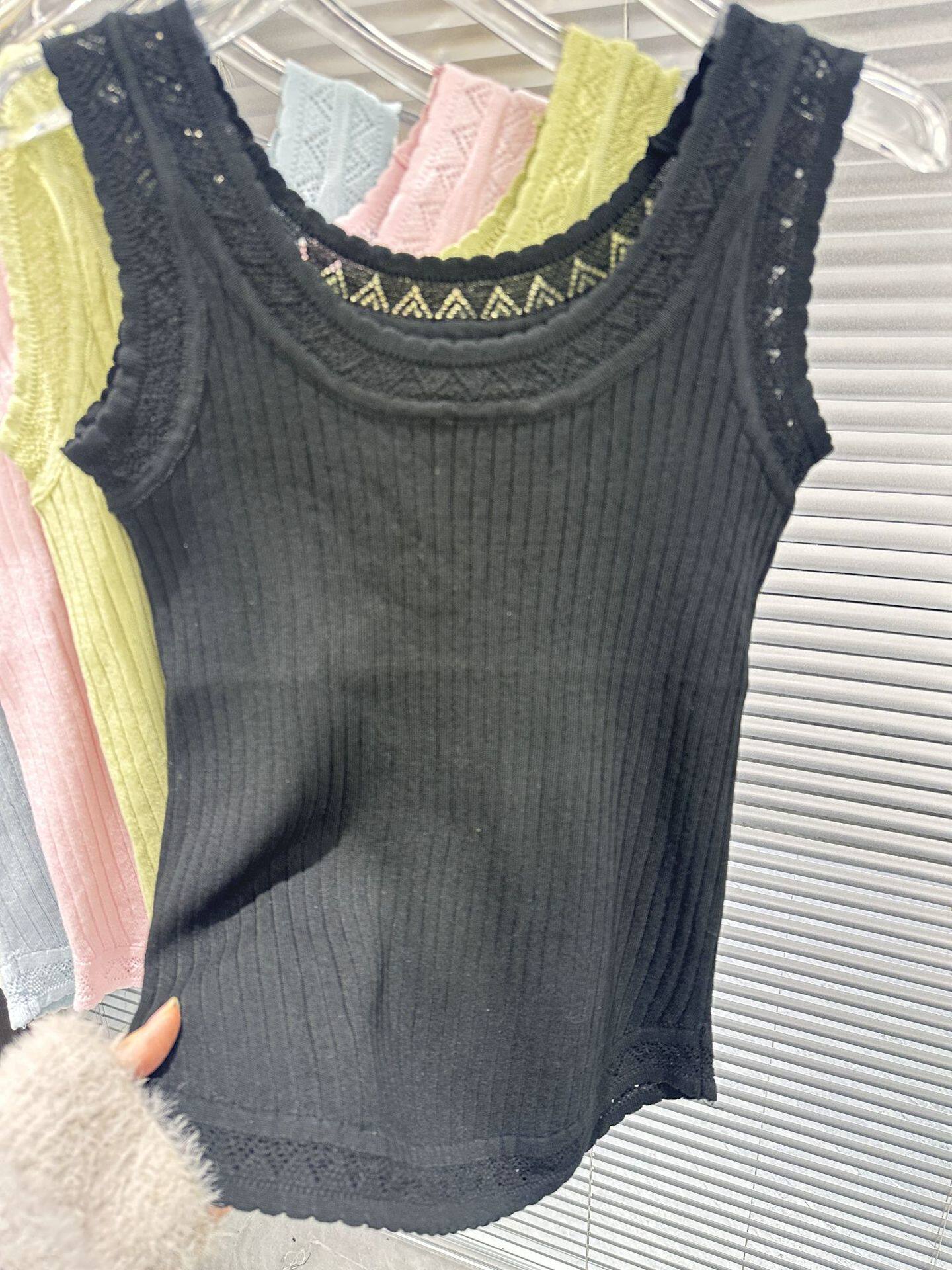 BY15740# 女士针织衫背心性感蕾丝边轻薄针织螺纹棉舒适柔软打底针织衫 服裝批發女裝批發服飾貨源