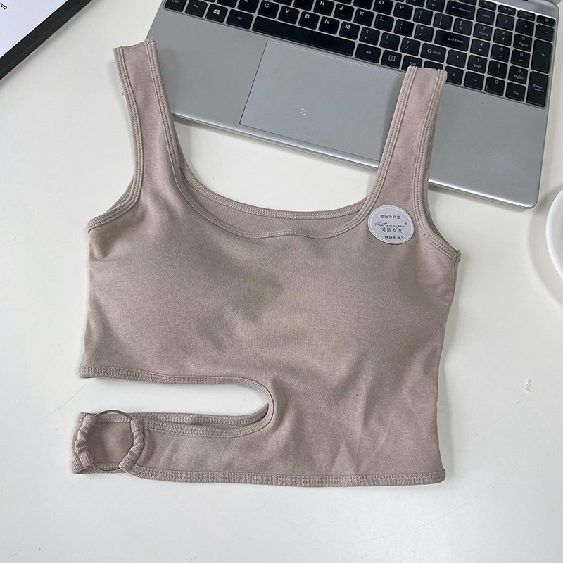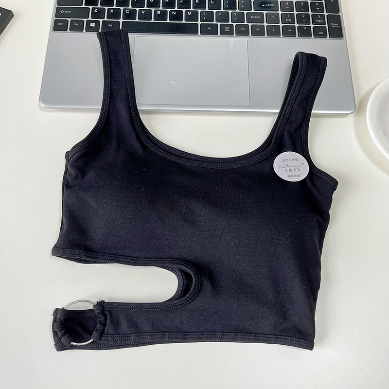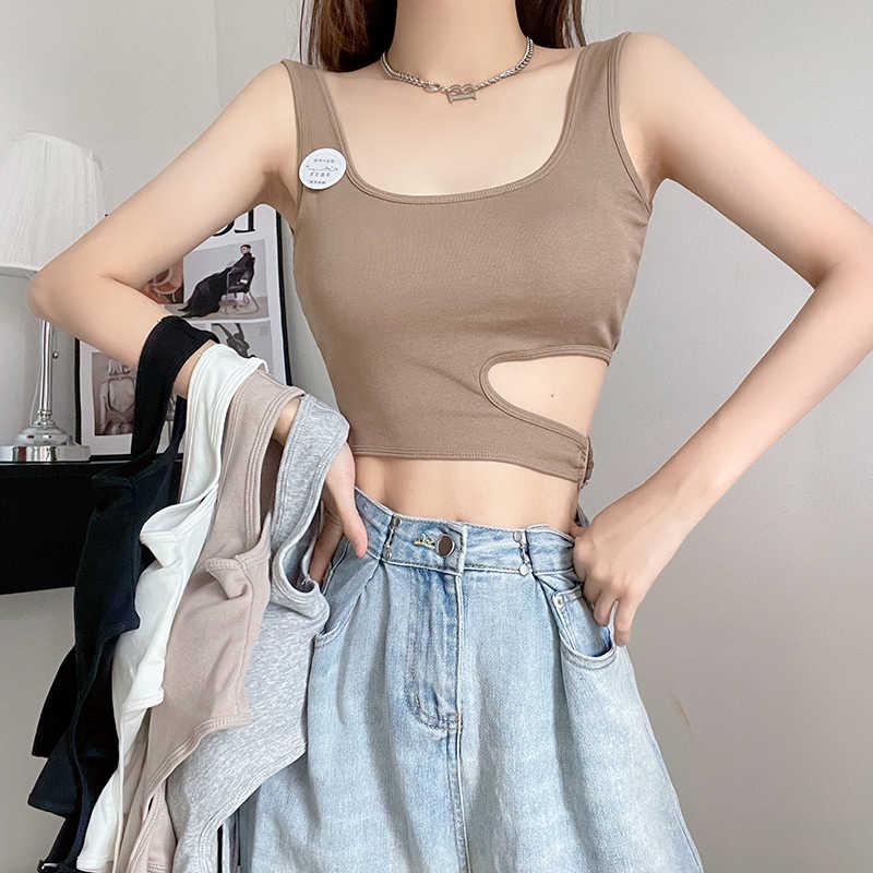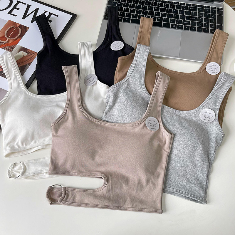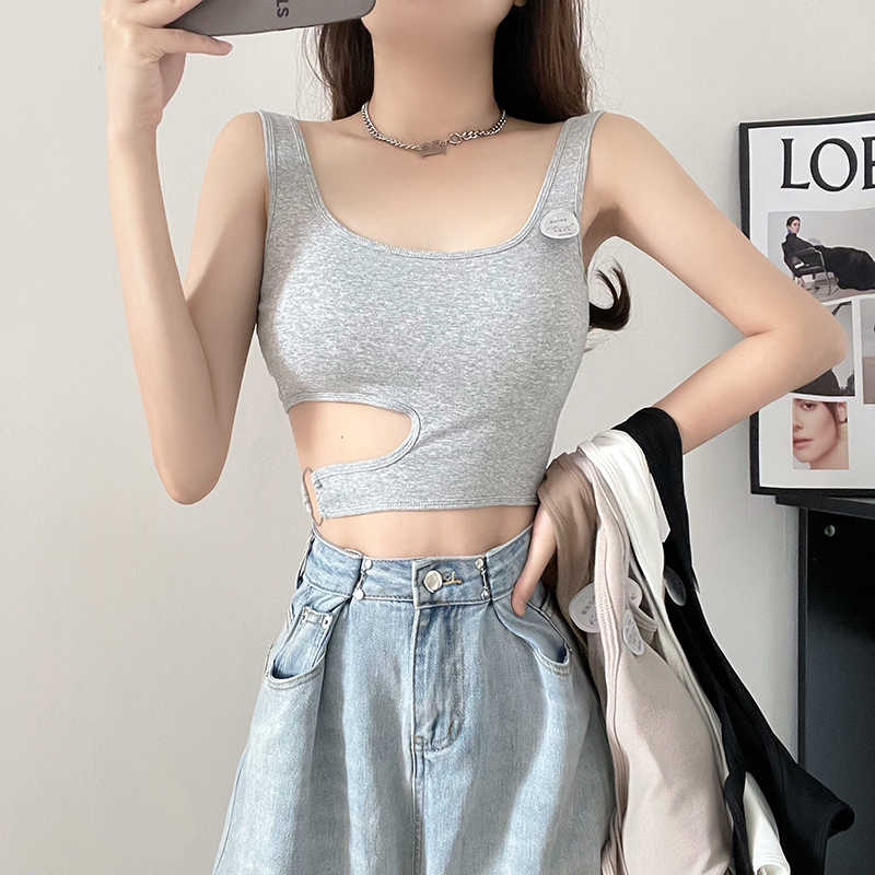 BY15749# 甜辣妹露腰小背心女带胸垫外穿坎肩t恤夏季打底短款无袖美背ins潮 服裝批發女裝批發服飾貨源