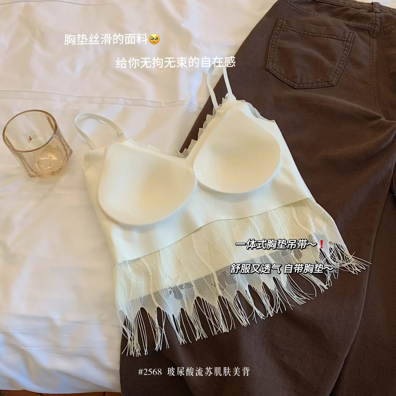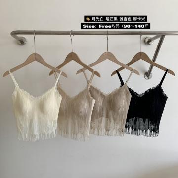 BY15751# 新款玻尿酸流苏法式蕾丝V领美背百搭内衣女吊带胸垫内搭打底背心 服裝批發女裝批發服飾貨源