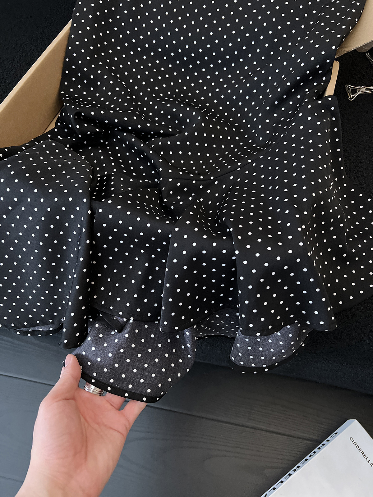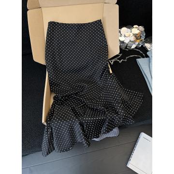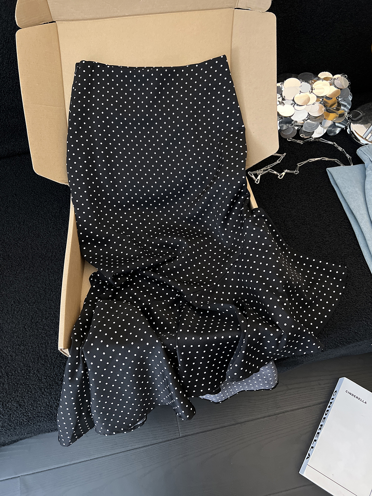 BY15766# 复古波点荷叶边半身裙女春季高腰设计感小众不规则包臀裙鱼尾裙子 服裝批發女裝批發服飾貨源