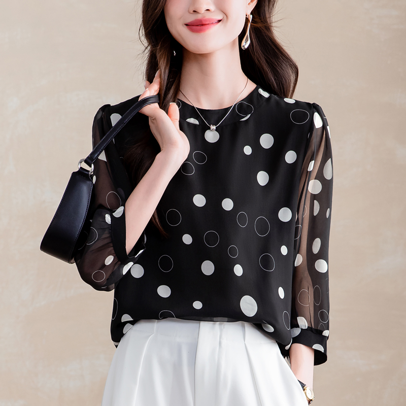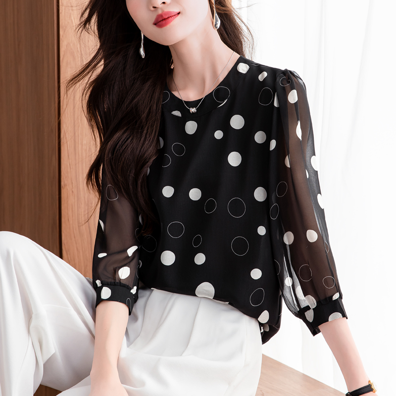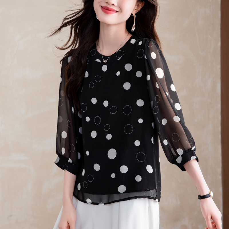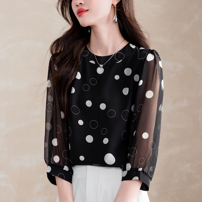 BY15769# 碎花雪纺衫春夏装新款时尚气质中袖小衫超仙洋气上衣女 服裝批發女裝批發服飾貨源