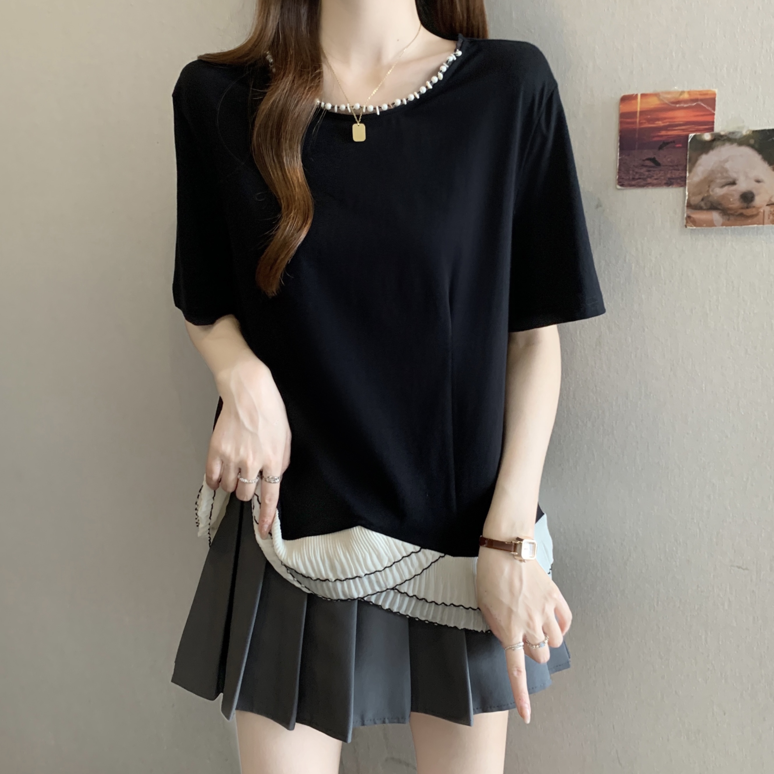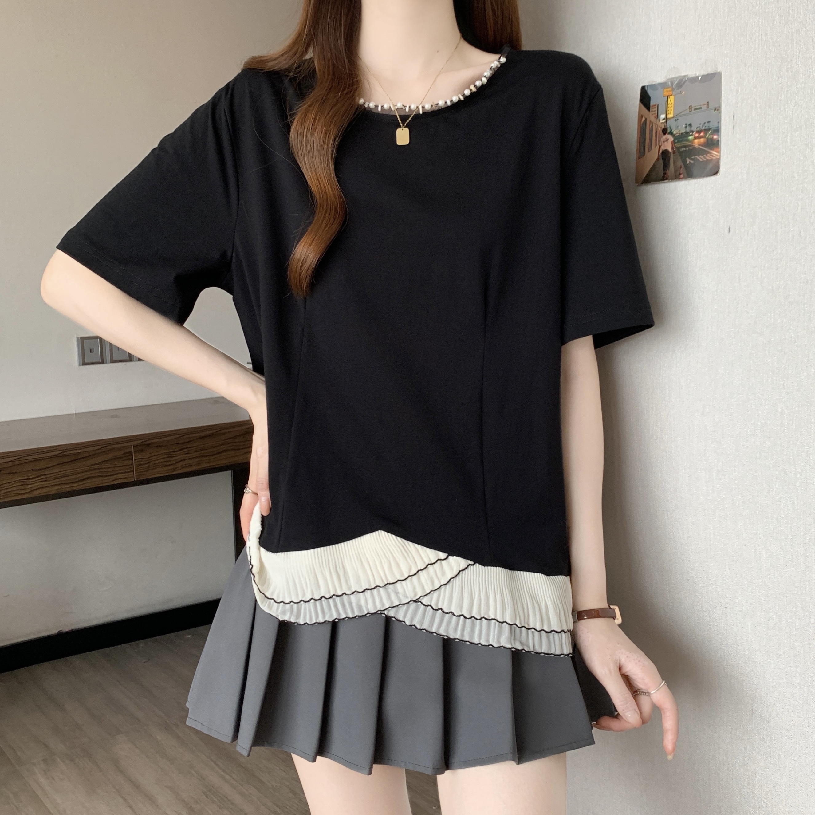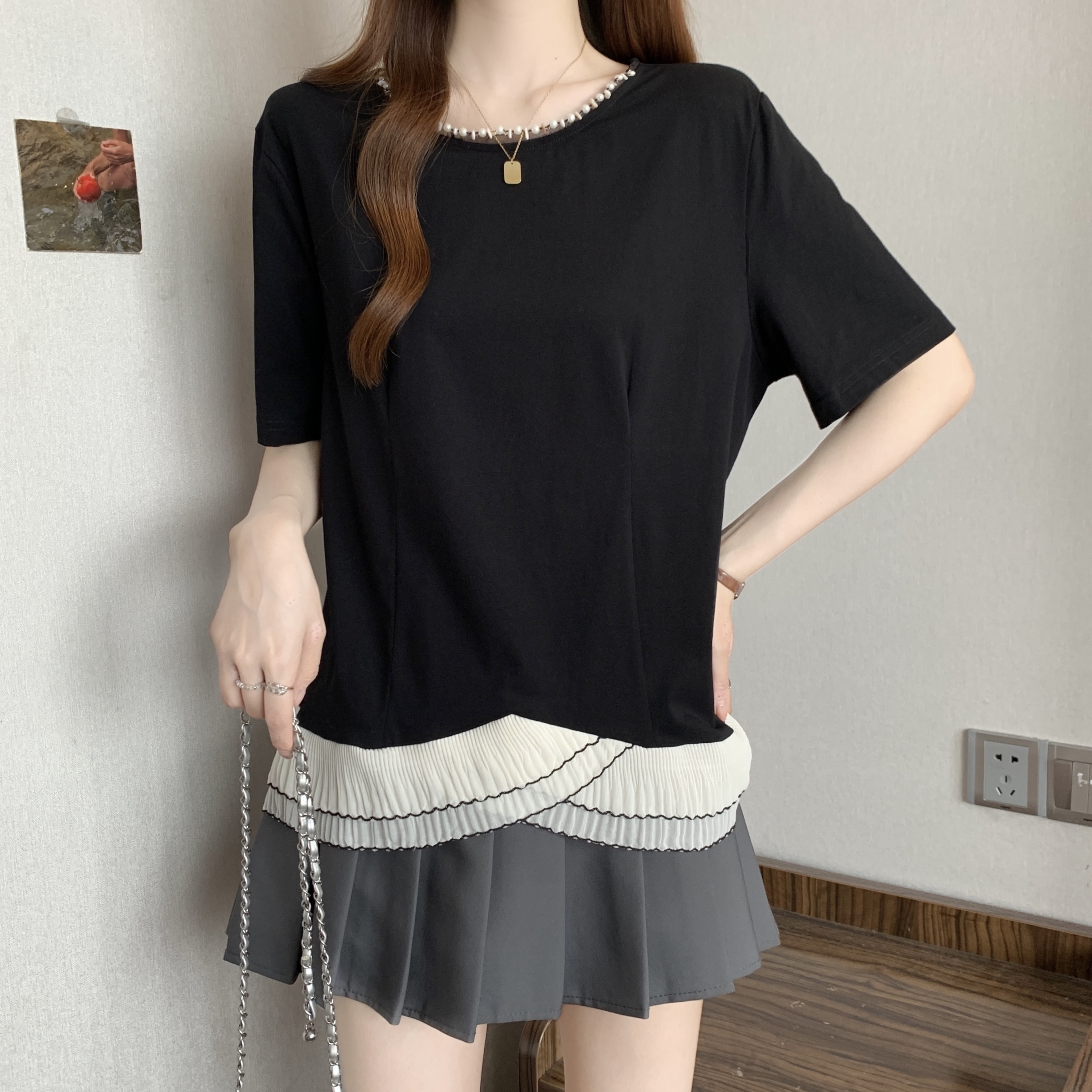 Hot : 大码 韩版 连衣裙 雪纺 衬衫 胖MM 牛仔 背带裤 假两件