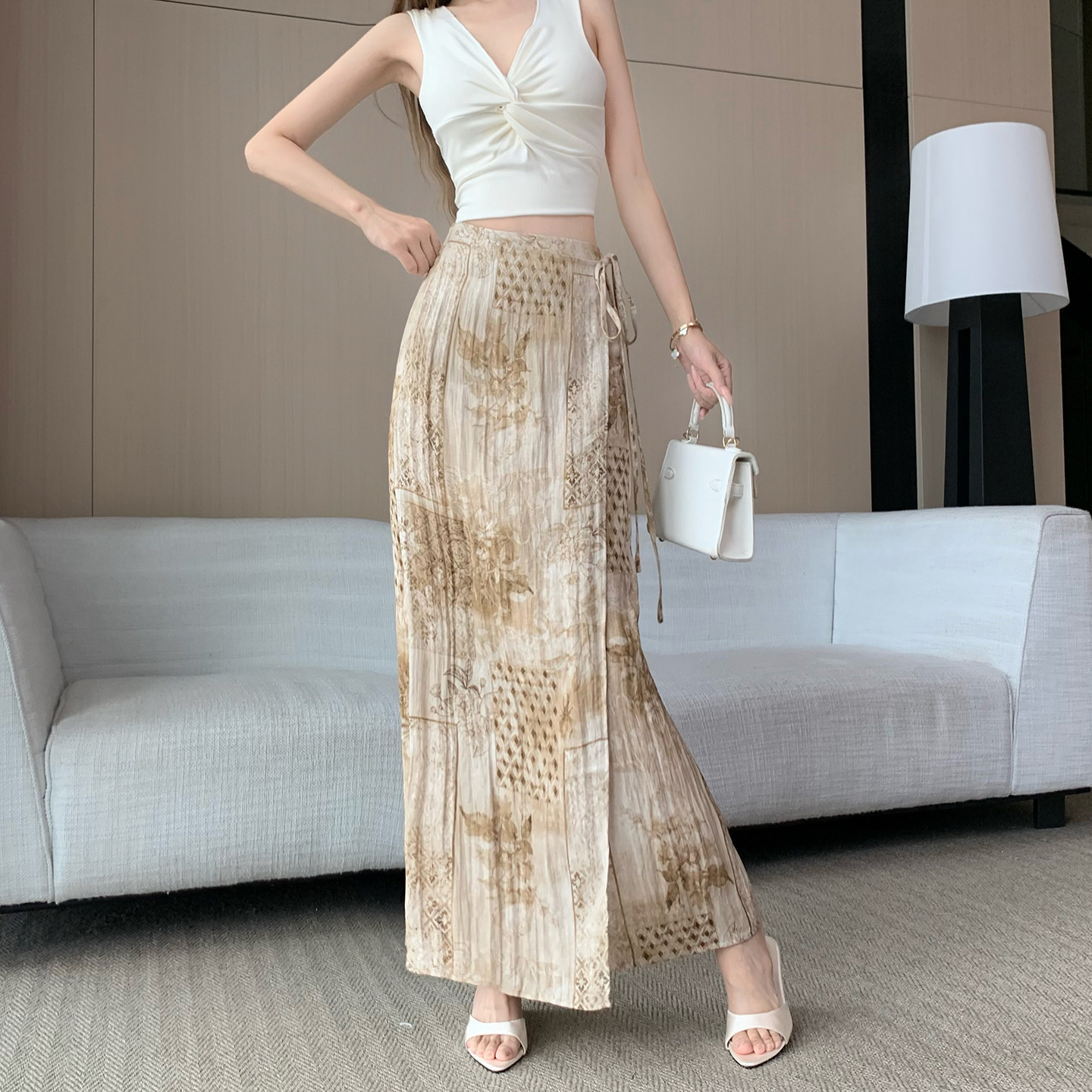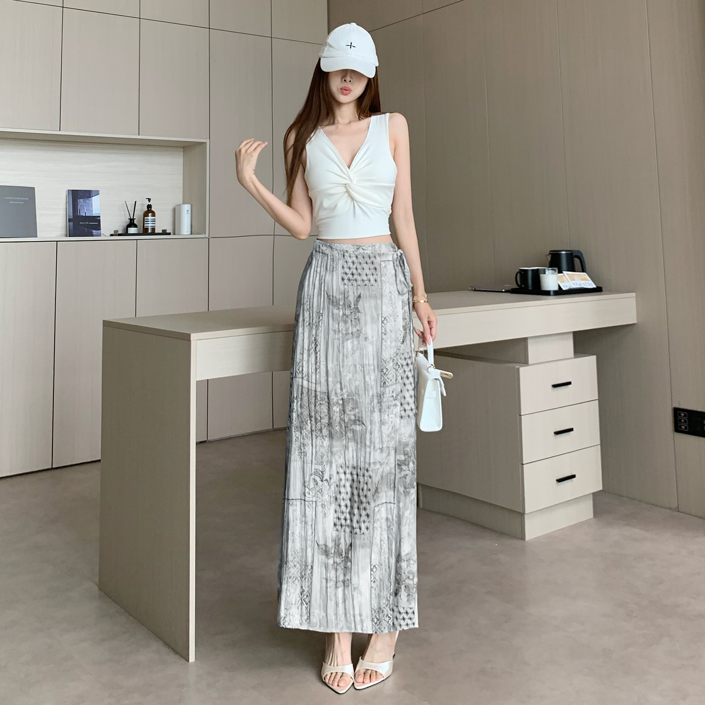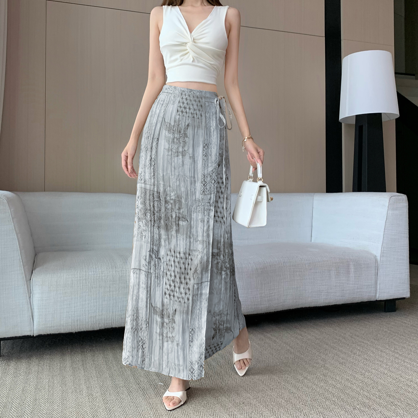 夏季法式优雅复古度假风简约时尚印花高腰显瘦设计感半身长裙子 服裝批發女裝批發服飾貨源
