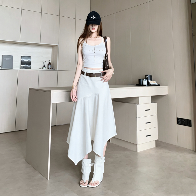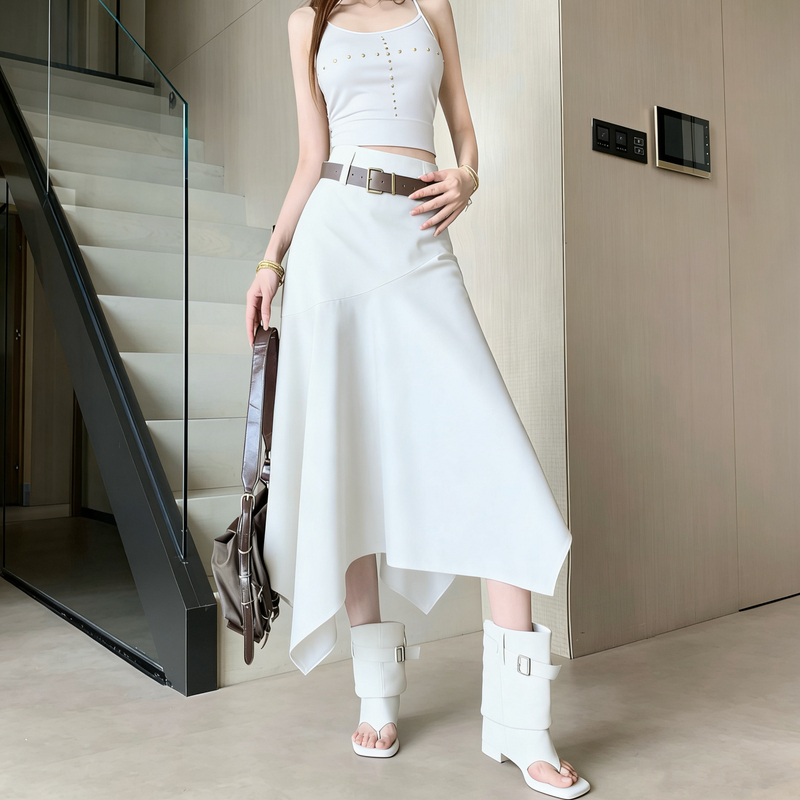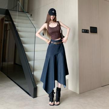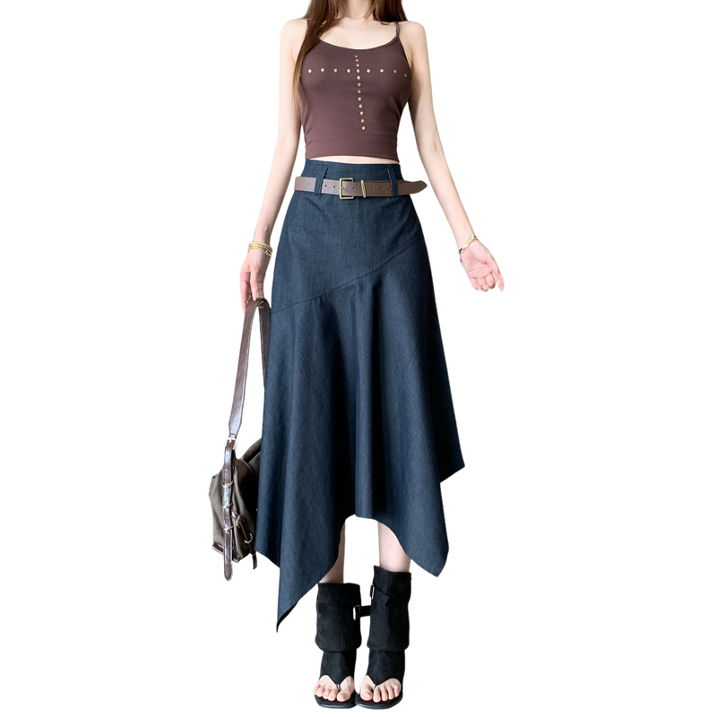 复古设计感不规则半身裙子女士春夏新款小众高腰显瘦a字半身伞裙 服裝批發女裝批發服飾貨源