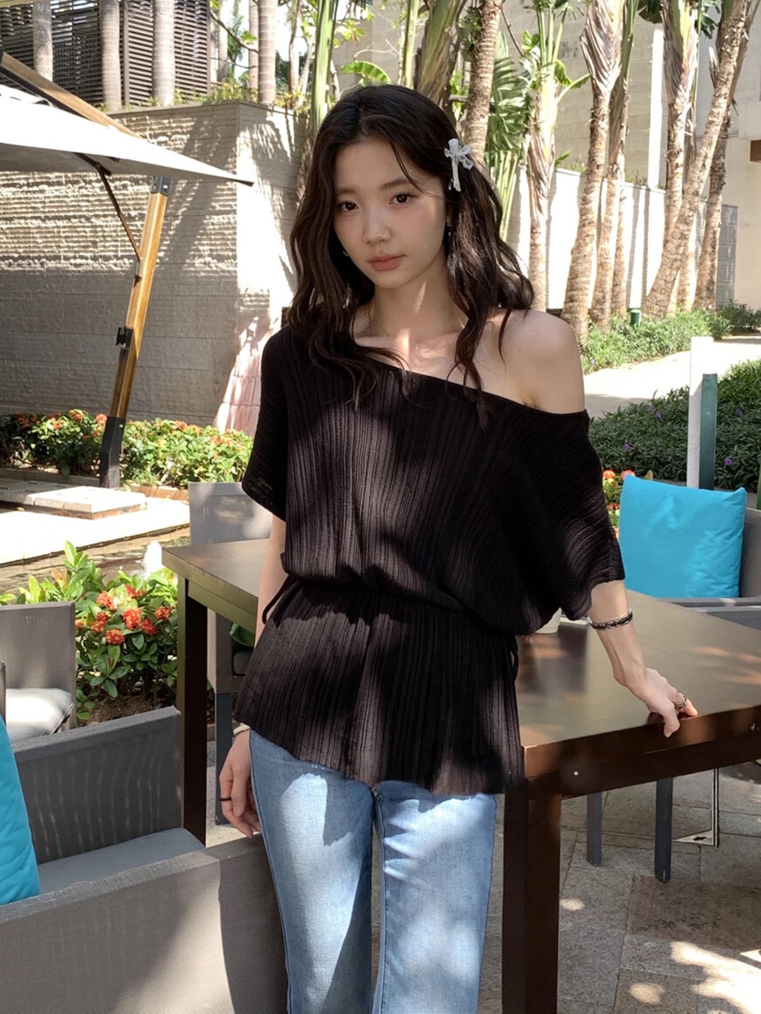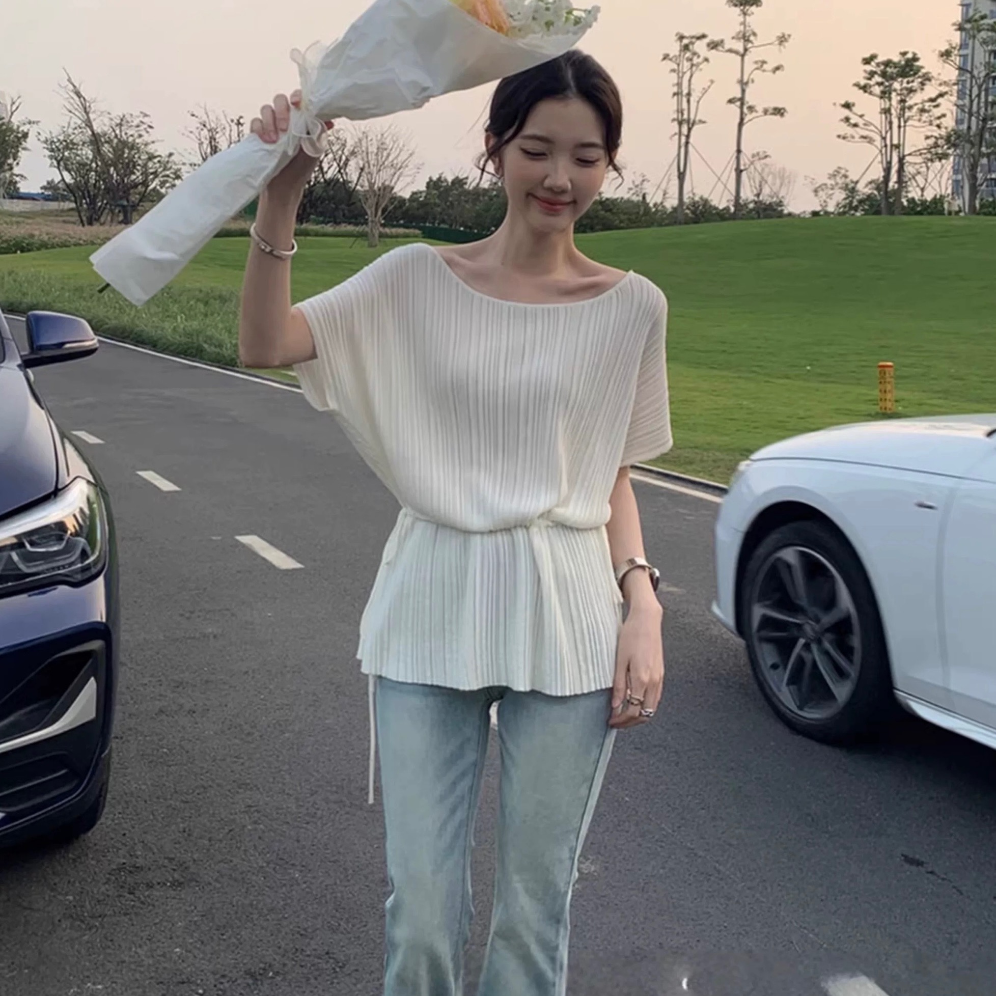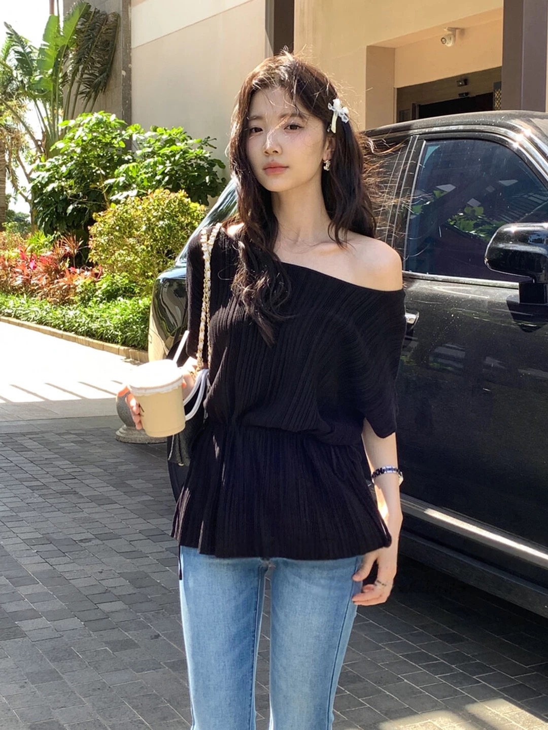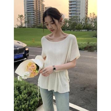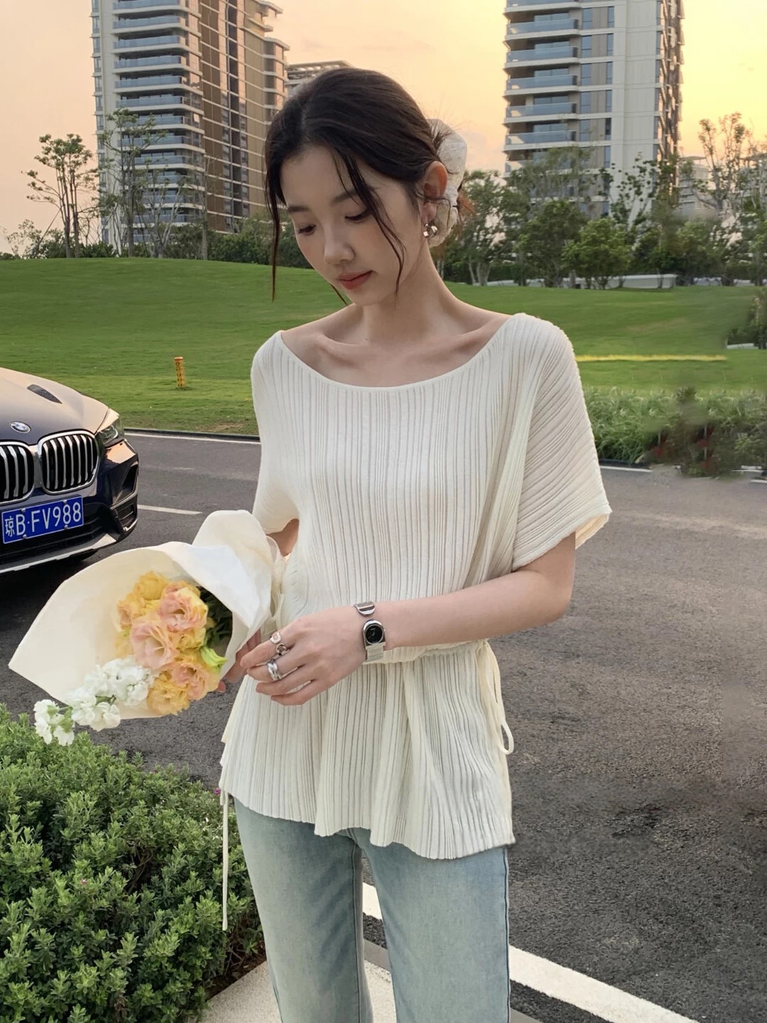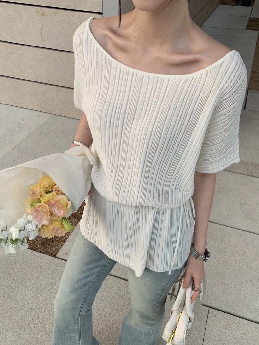 BY15929# 时尚老钱风莱赛尔肌理坑条宽松收腰蝙蝠袖针织小衫 服裝批發女裝批發服飾貨源