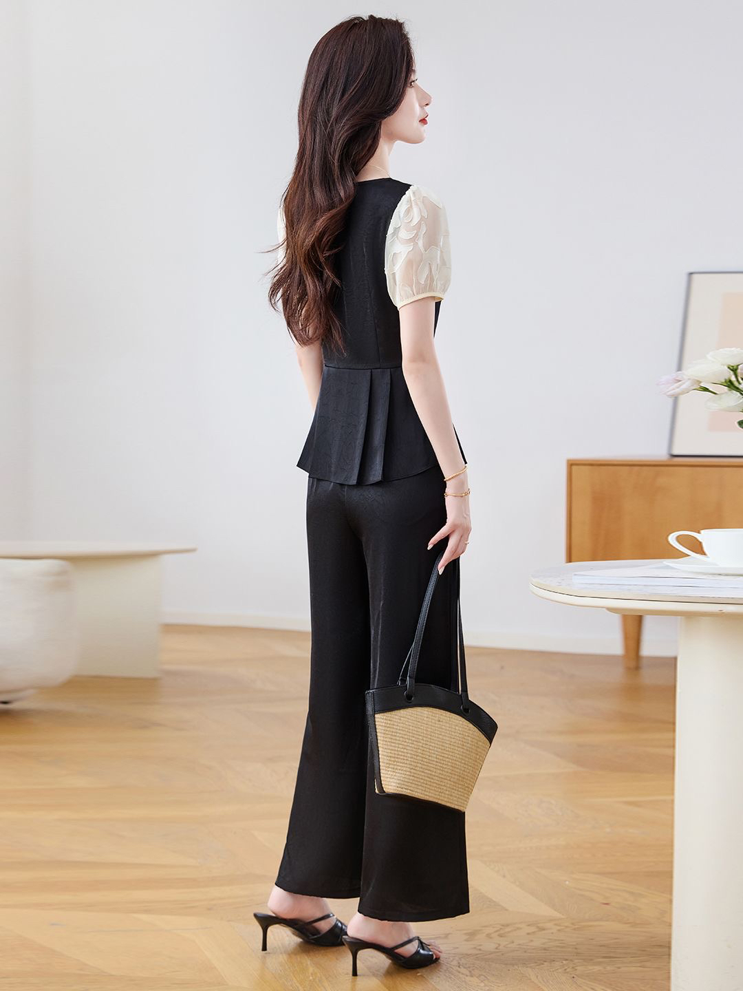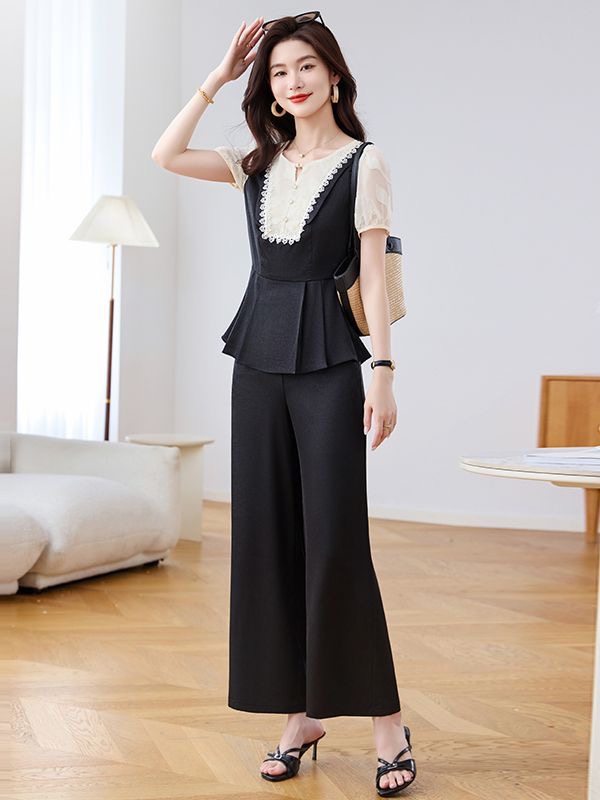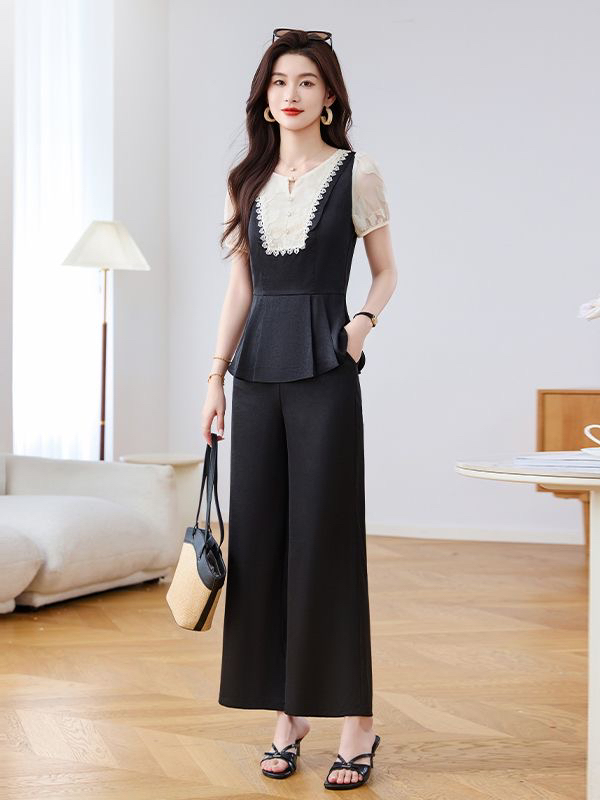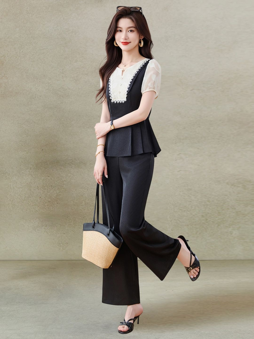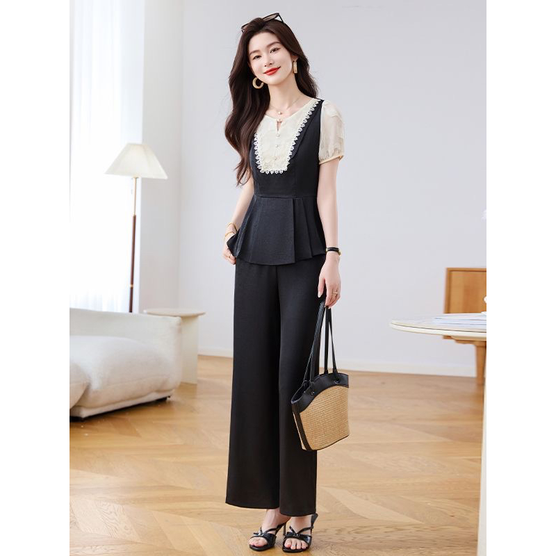气质时尚套装夏季新款贵夫人洋气高端减龄显瘦职业雪纺两件套 服裝批發女裝批發服飾貨源