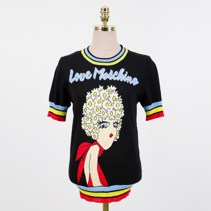 BY15941# 美女图案短袖针织衫春夏新款女装撞色打底上衣韩版时尚百搭 服裝批發女裝批發服飾貨源