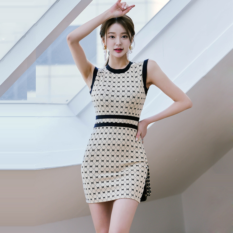 BY15944# 夏季新款韩版气质修身拼色提花收腰针织包臀时尚连衣裙女装潮 服裝批發女裝批發服飾貨源