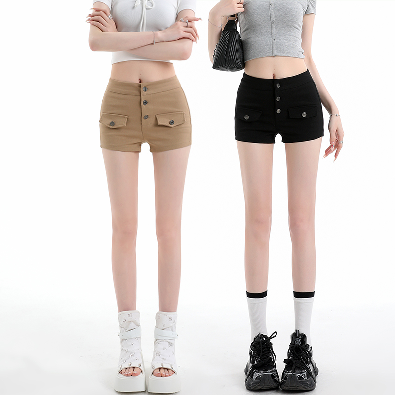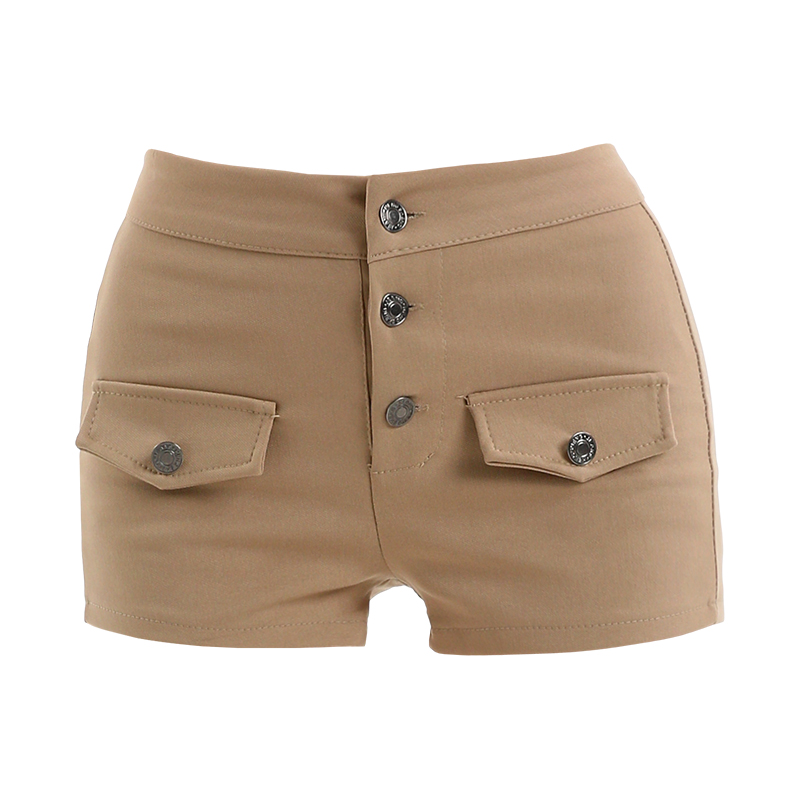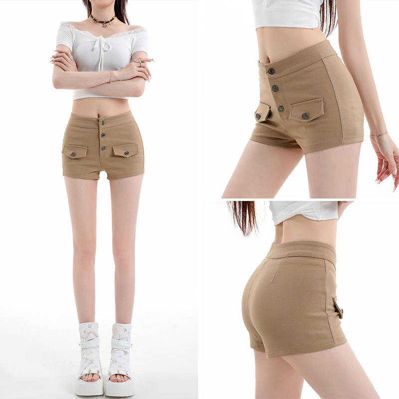 纯欲辣妹卡其色短裤夏新款高腰修身显瘦弹力包臀女团热裤 服裝批發女裝批發服飾貨源