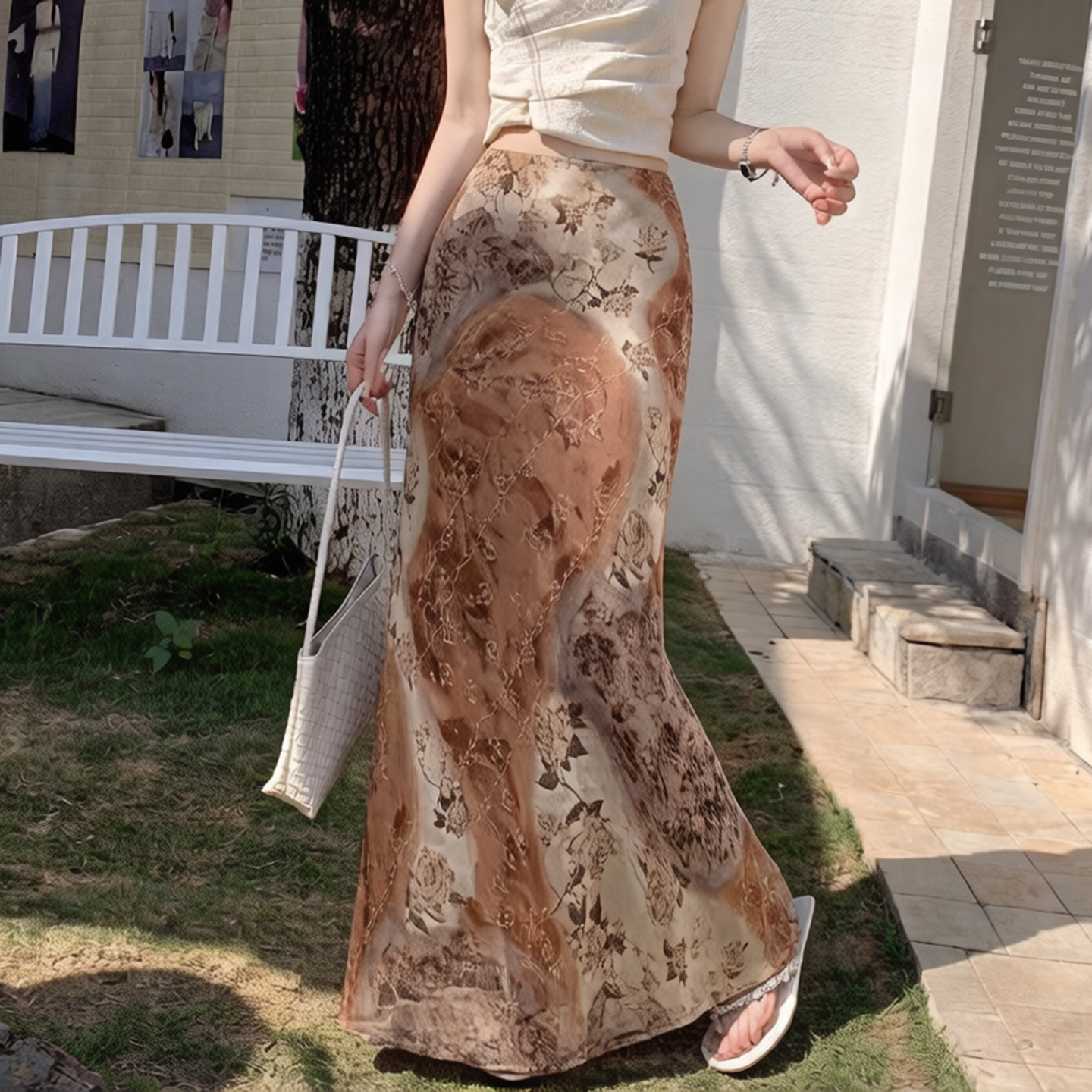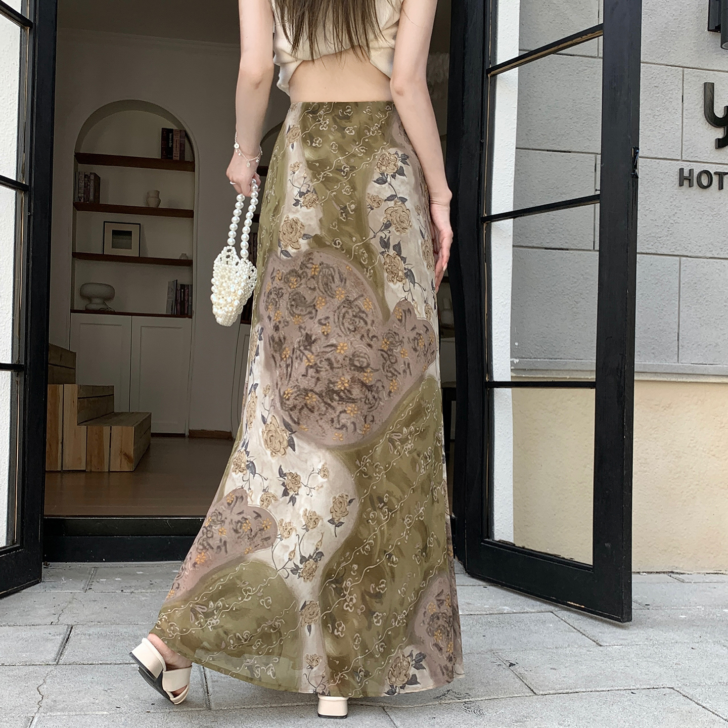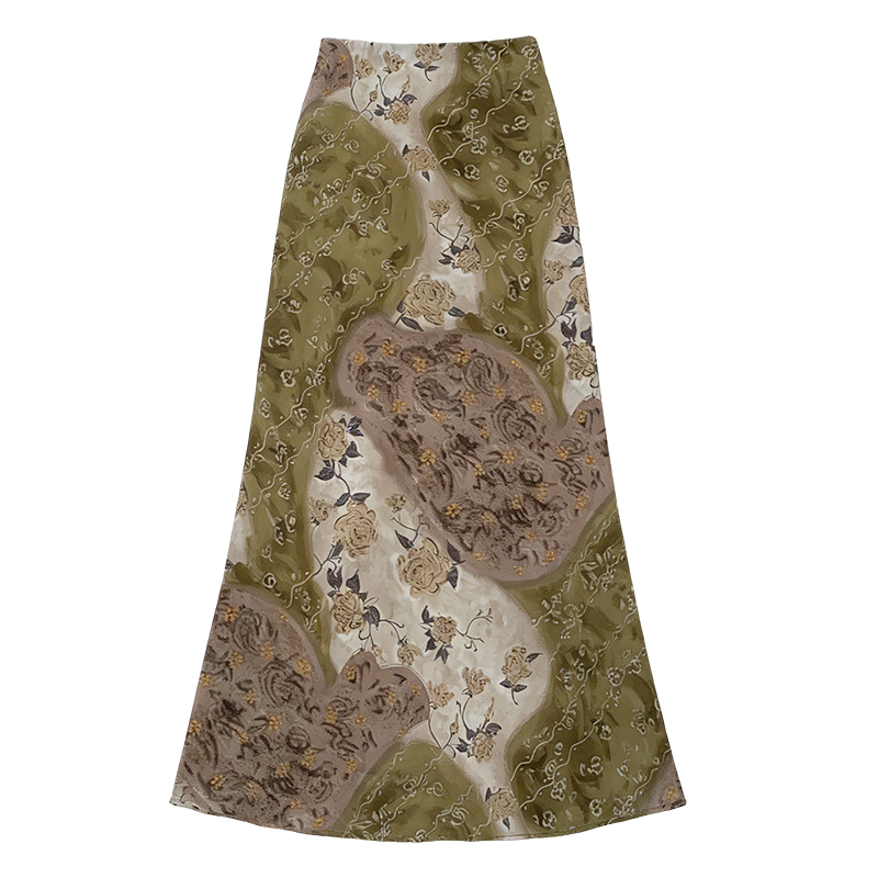 BY15984# 夏季新款中古感晕染印花鱼尾裙半身裙显瘦包臀裙度假风雪纺长裙 服裝批發女裝批發服飾貨源