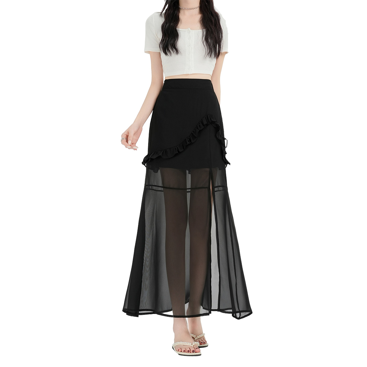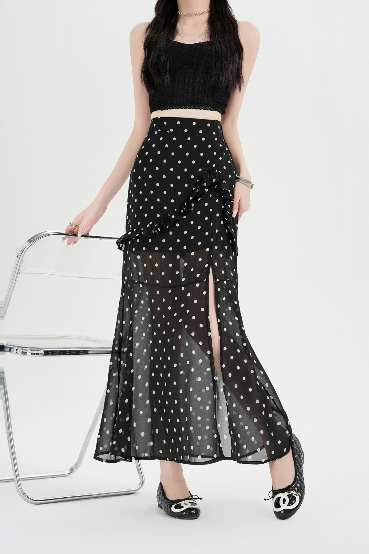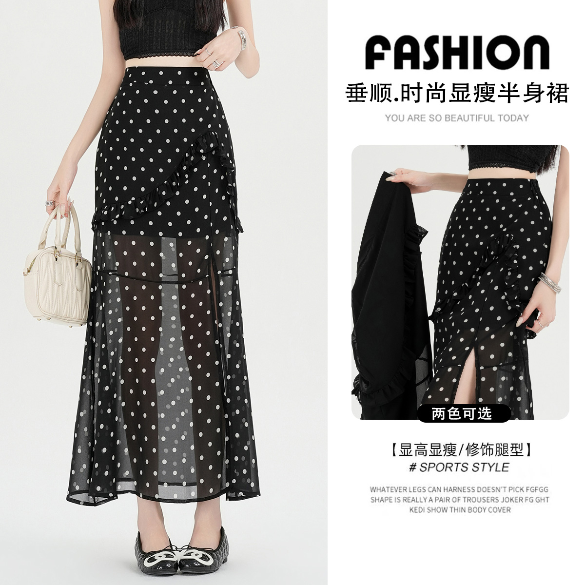 不规则波点半身裙女新款气质高腰显瘦长裙 服裝批發女裝批發服飾貨源