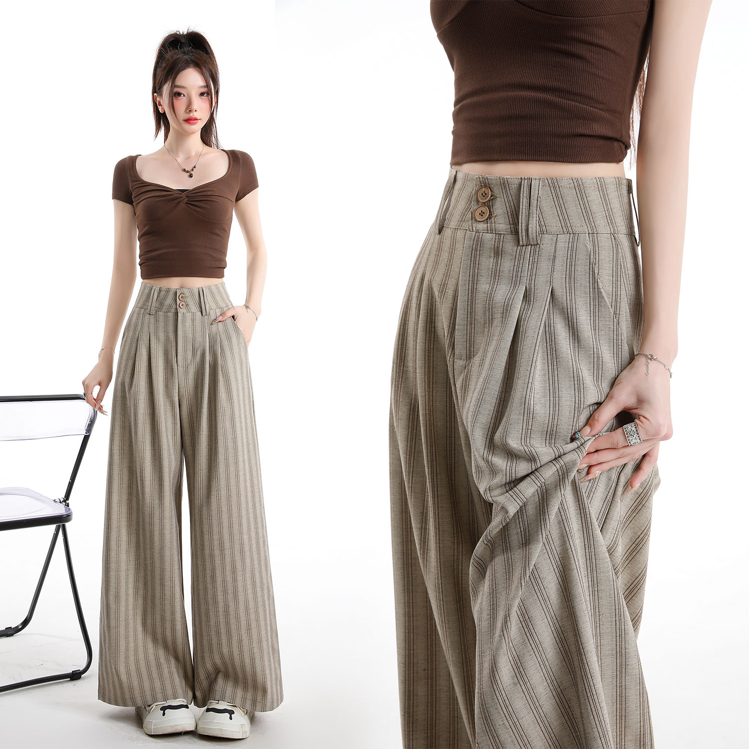 条纹西装裤女春季新款韩系休闲感高腰显瘦垂坠感阔腿裤 服裝批發女裝批發服飾貨源
