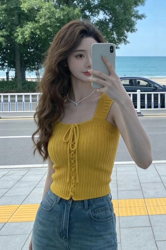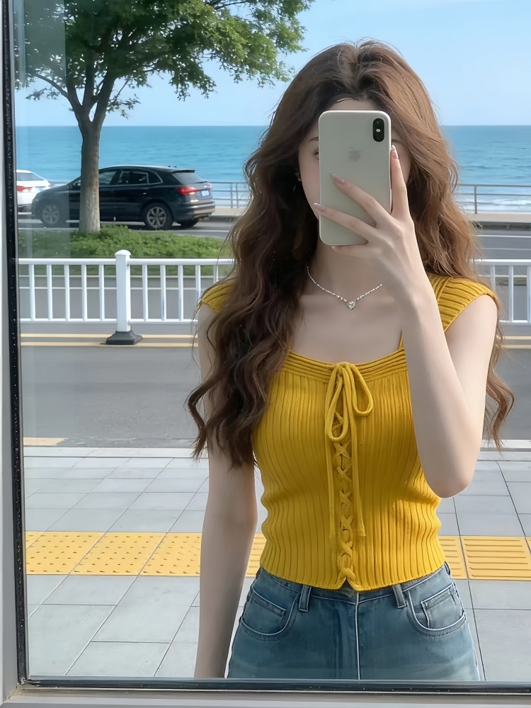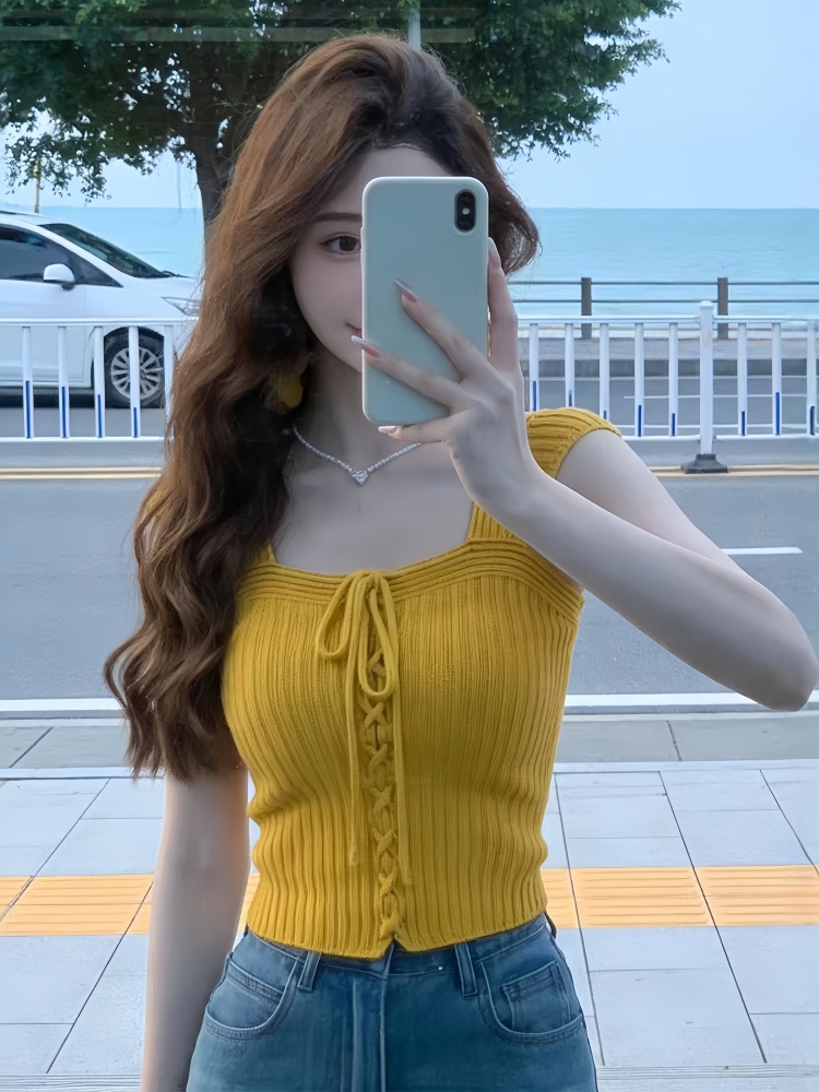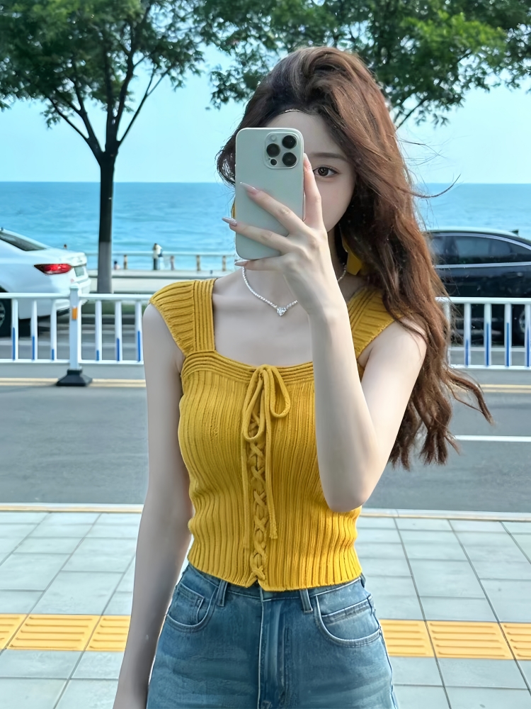 BY16308# 多巴胺辣妹穿搭无袖背心女夏季新款气质修身独特漂亮针织上衣 服裝批發女裝批發服飾貨源