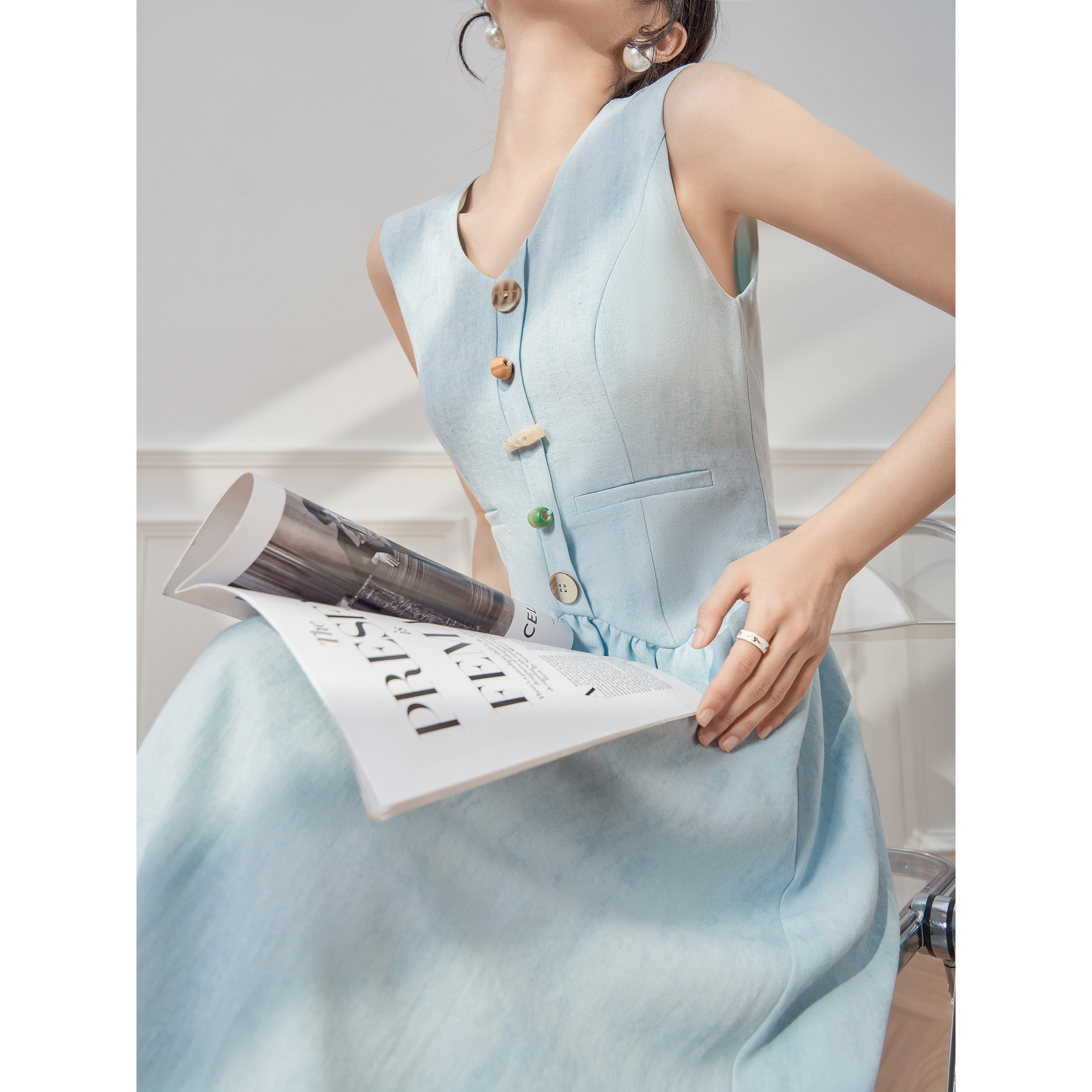 BY16333# 流行的漂亮蓝色无袖背心连衣裙女26绝美巨好看的小裙子夏装 服裝批發女裝批發服飾貨源