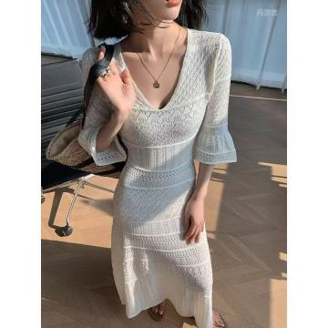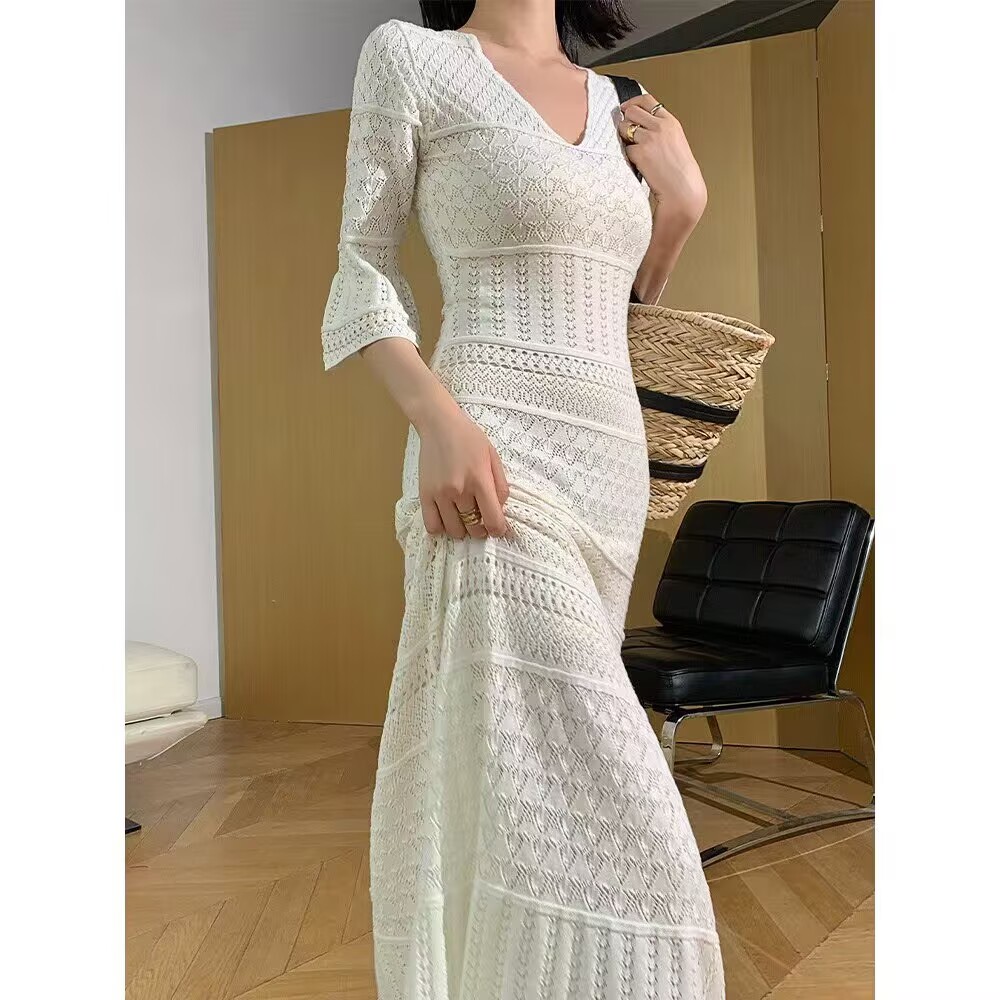 BY16446# 新款气质长裙法式春秋御姐镂空独特小众设计感女小个子连衣裙 服裝批發女裝批發服飾貨源