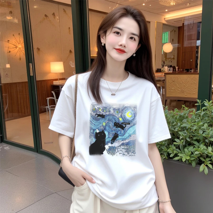 BY16705# 纯棉-棉春夏装短袖T恤女韩版印花