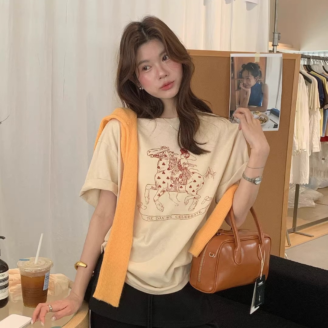 BY16711# 纯棉-棉春夏装短袖T恤女韩版印花