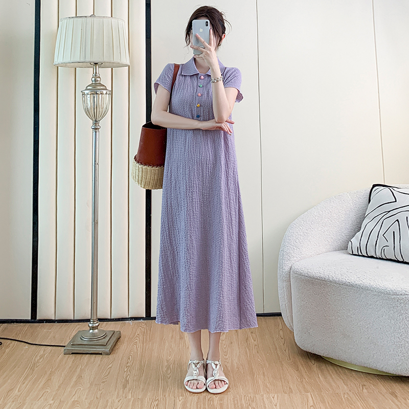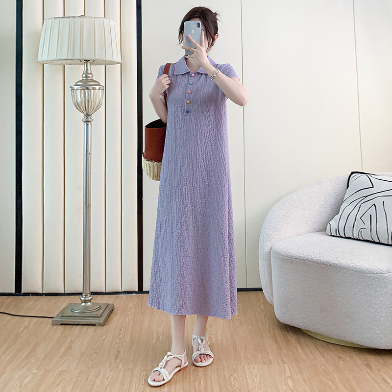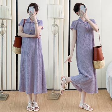 夏季新款短袖大码宽松清凉翻领显瘦中长款连衣裙