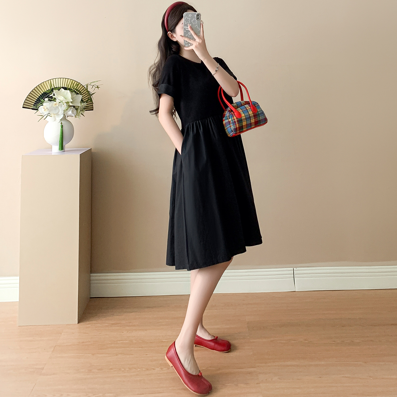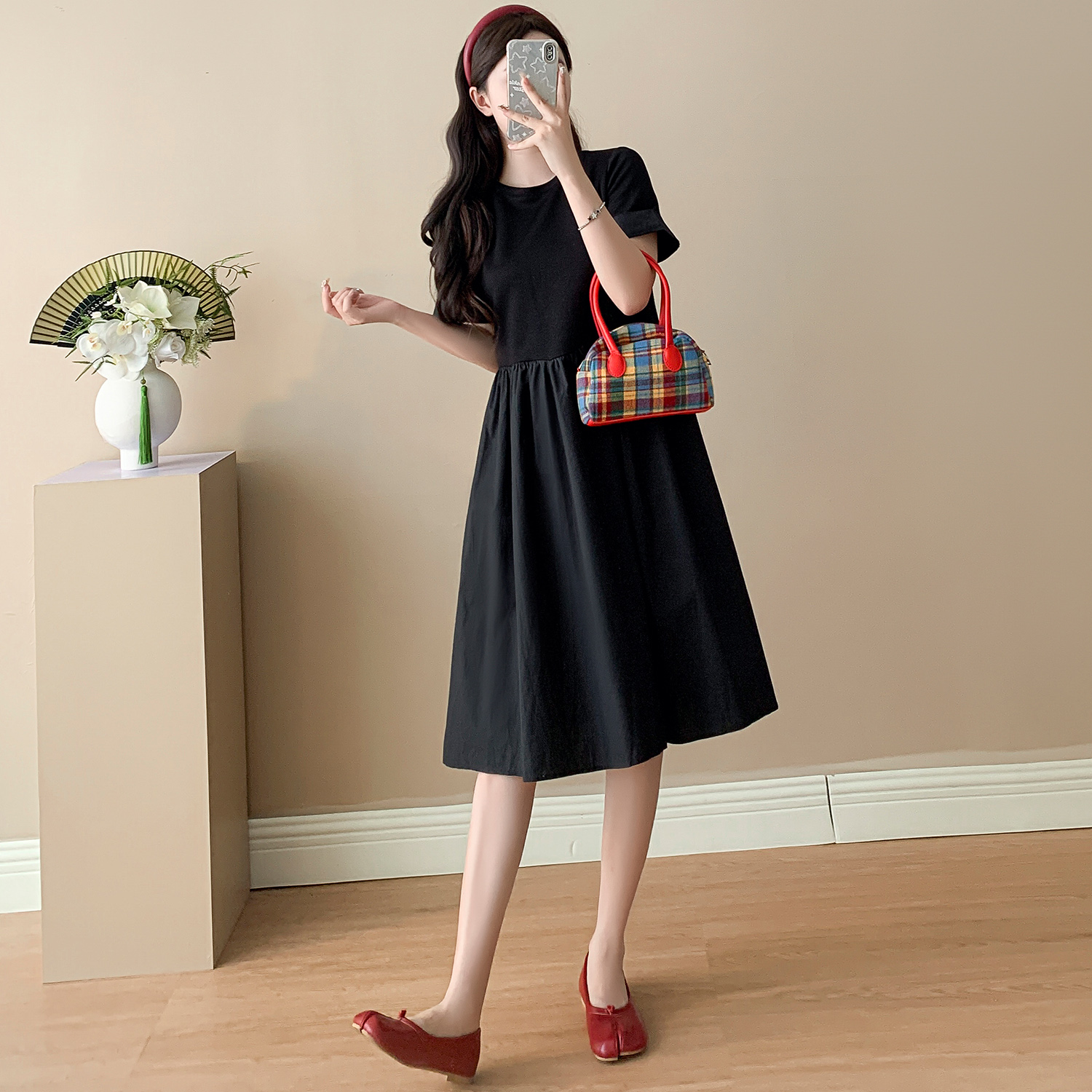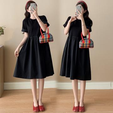 夏季新款赫本风黑色连衣裙韩版宽松大码显瘦A字裙