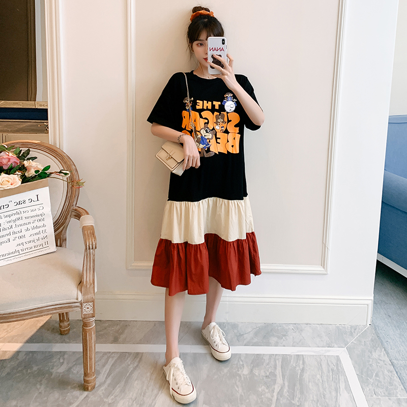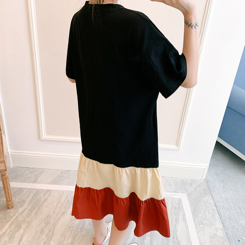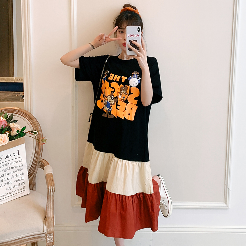 新款大码宽松胖mm洋气显瘦夏装拼接纯棉长款连衣裙