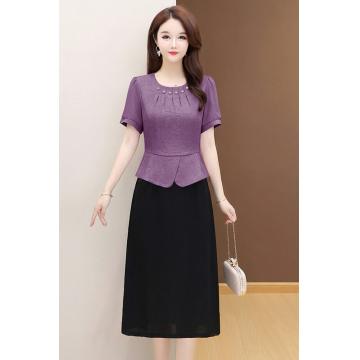 夏季新款大码连衣裙短袖暗纹提花收腰显瘦包臀裙