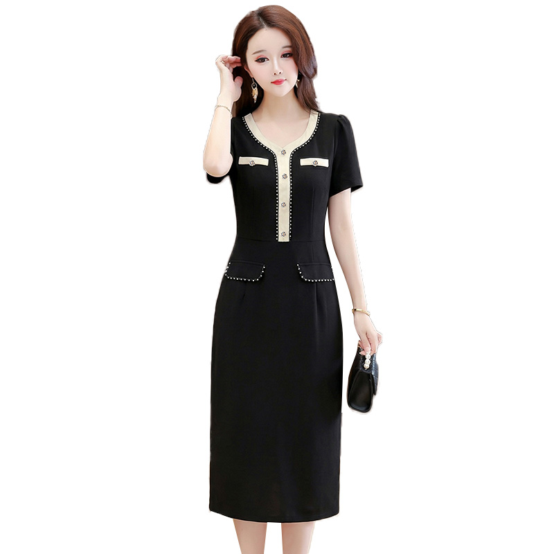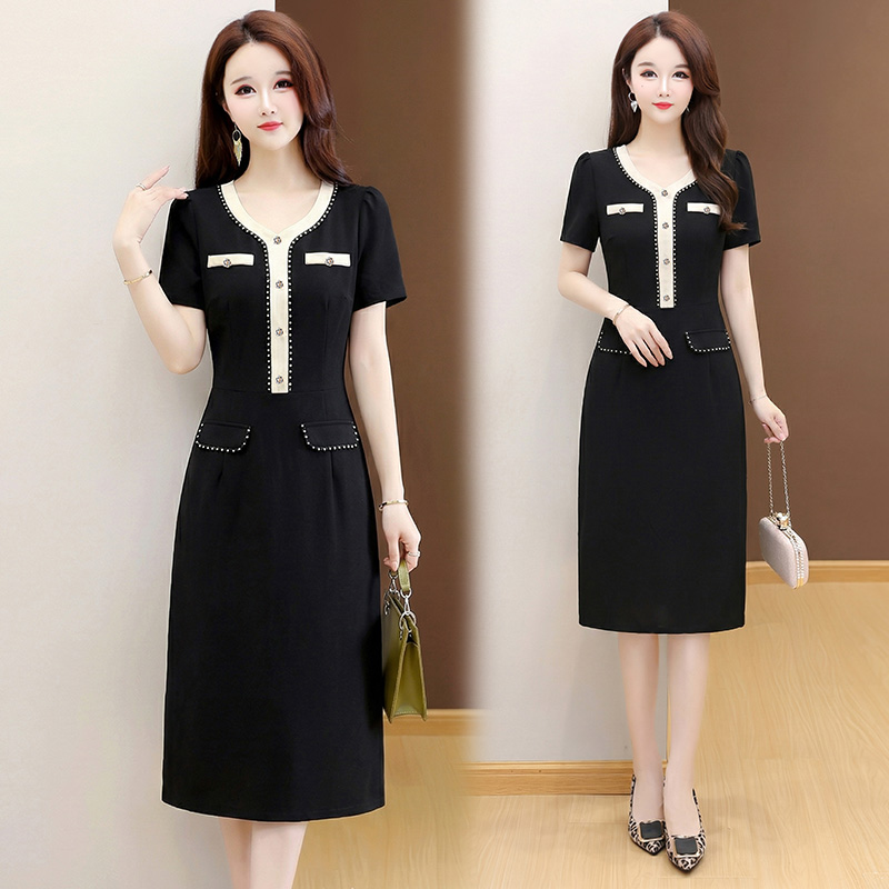 夏季新款大码短袖连衣裙收腰时尚减龄小香风