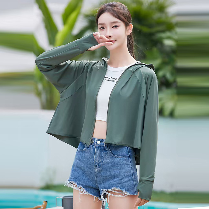 BY17196# 韩版夏季防紫外线黑胶帽檐连帽短款防晒外套女防晒衣女夏季上衣