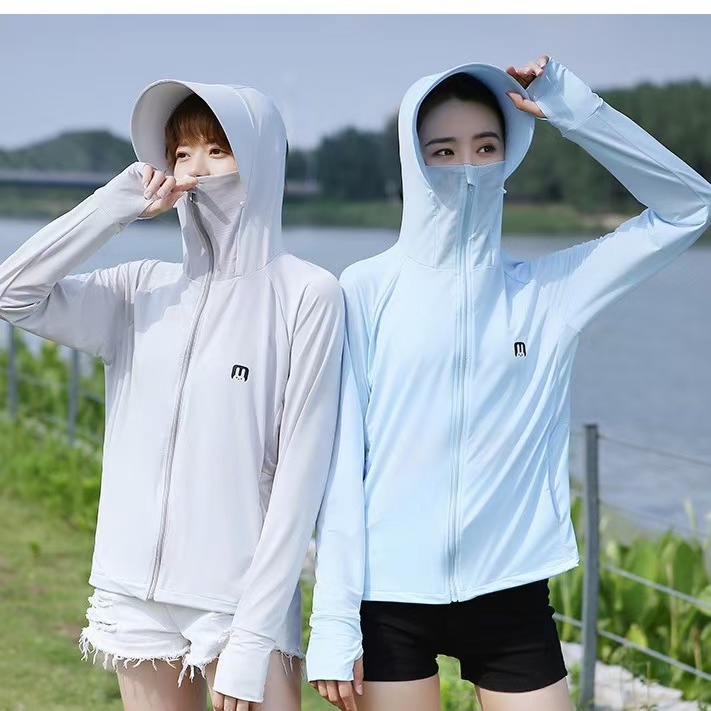 BY17197# 韩版开衫拉链透气夏季新款开衫拉链透气冰凉舒适连帽防晒衣外套女