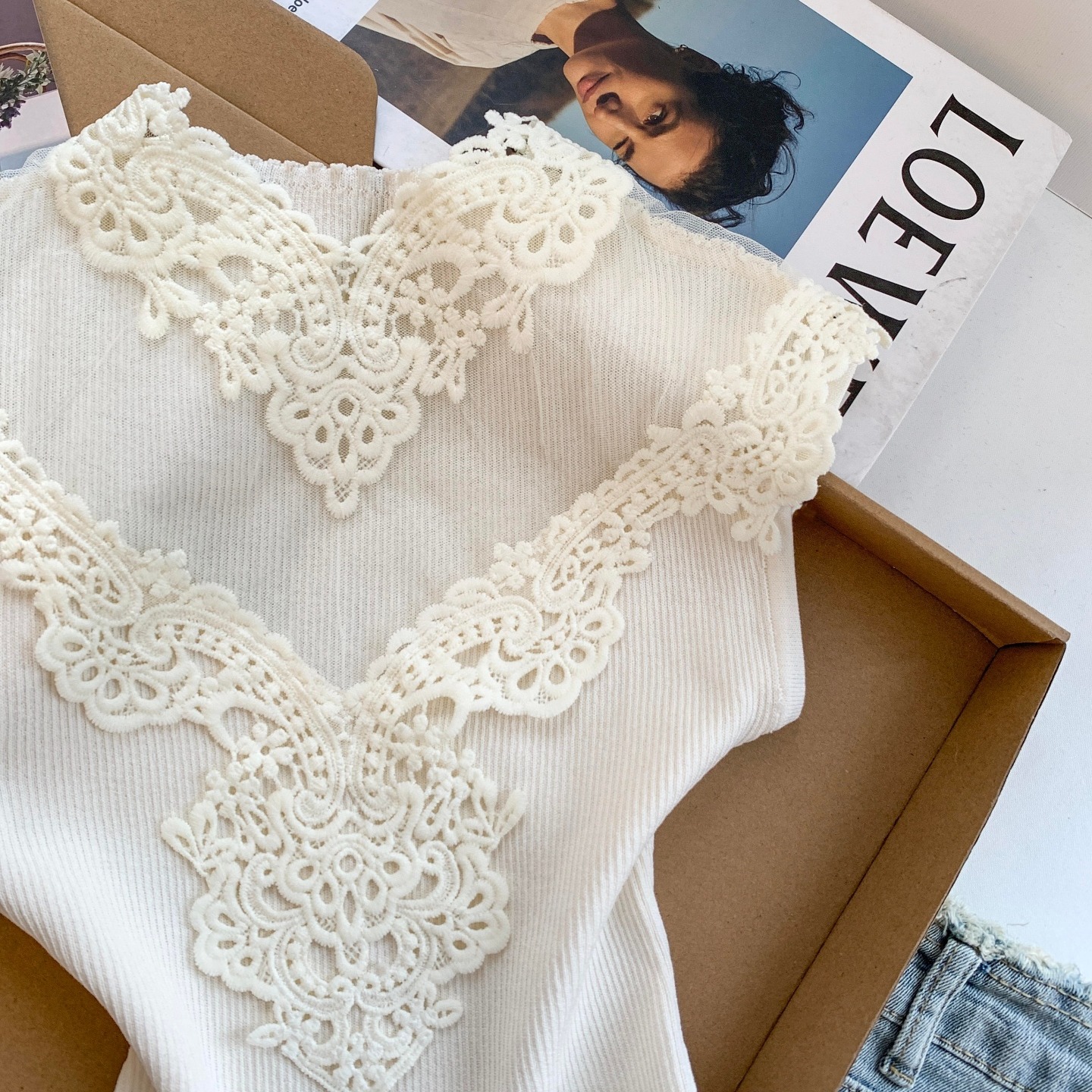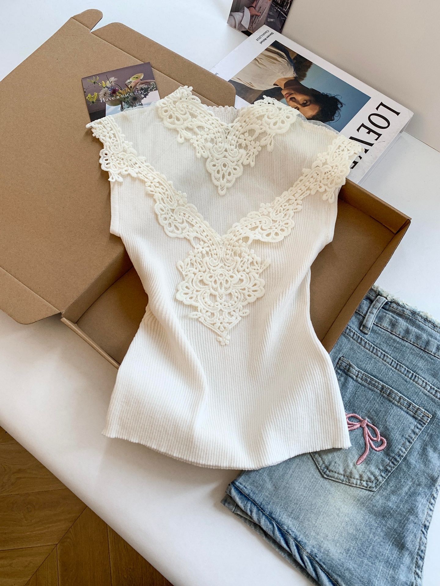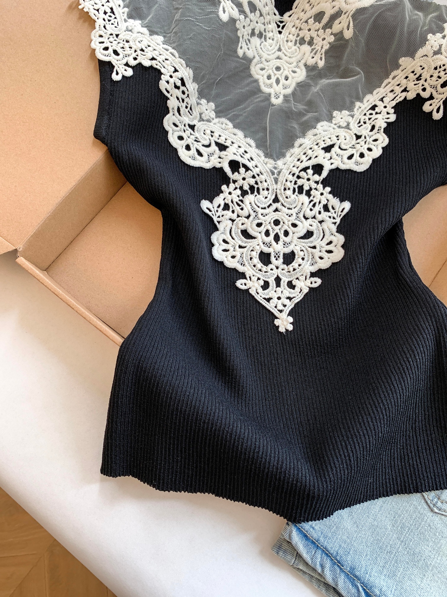 BY17252# 法式轻熟风蕾丝拼接修身无袖背心精致洋气显瘦外穿内搭上衣女