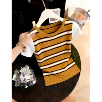 BY17258# 复古条纹设计感针织衫夏款修身洋气小众百搭上衣短袖漂亮百搭