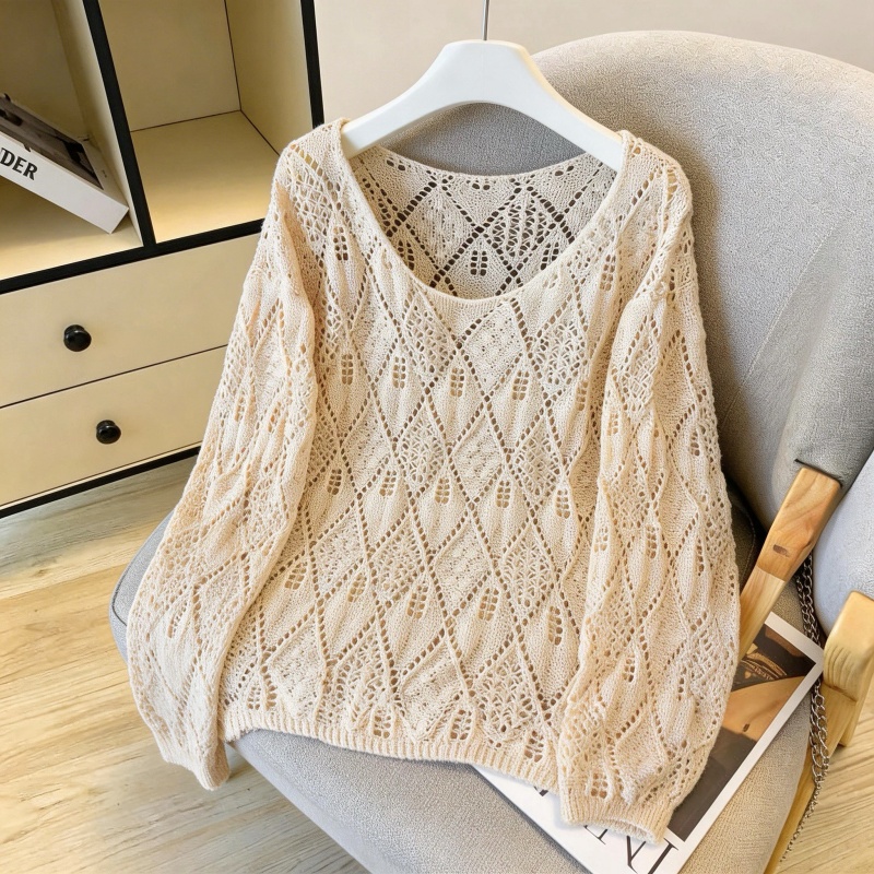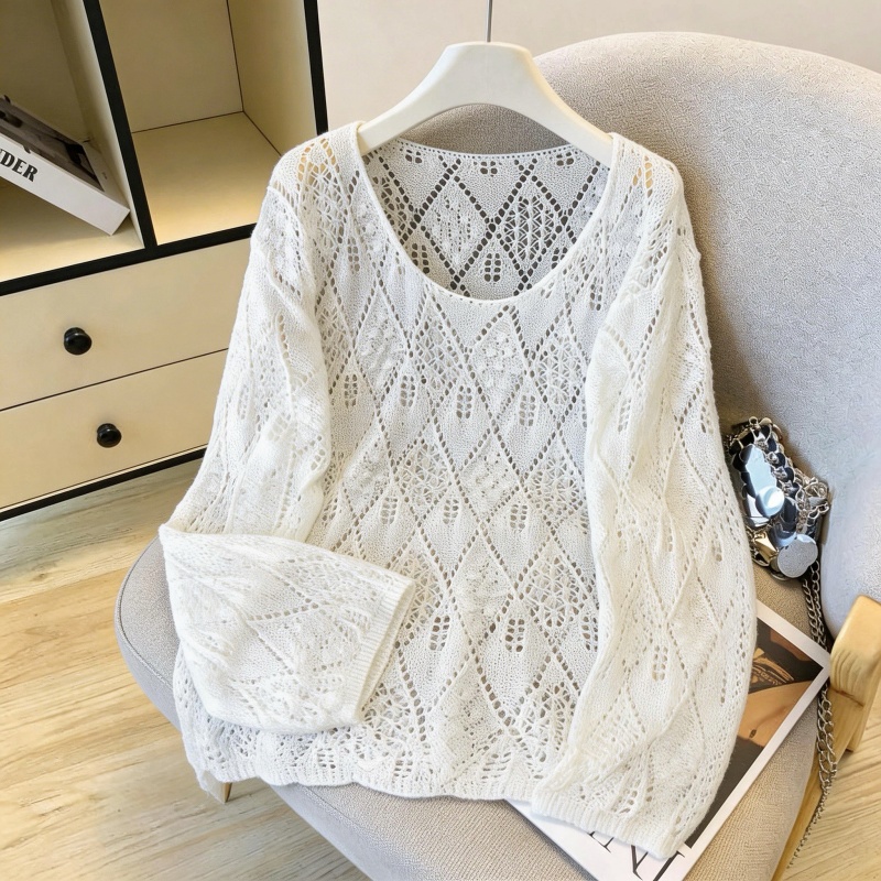 春夏新款连帽镂空针织衫女慵懒风薄款防晒外搭上衣 服裝批發女裝批發服飾貨源