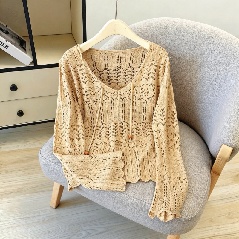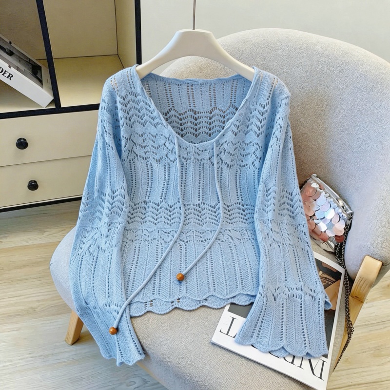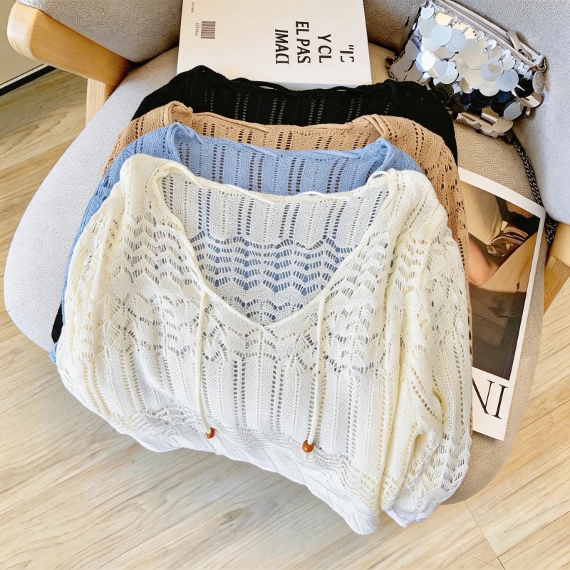 春夏新款连帽镂空针织衫女慵懒风薄款防晒外搭上衣 服裝批發女裝批發服飾貨源